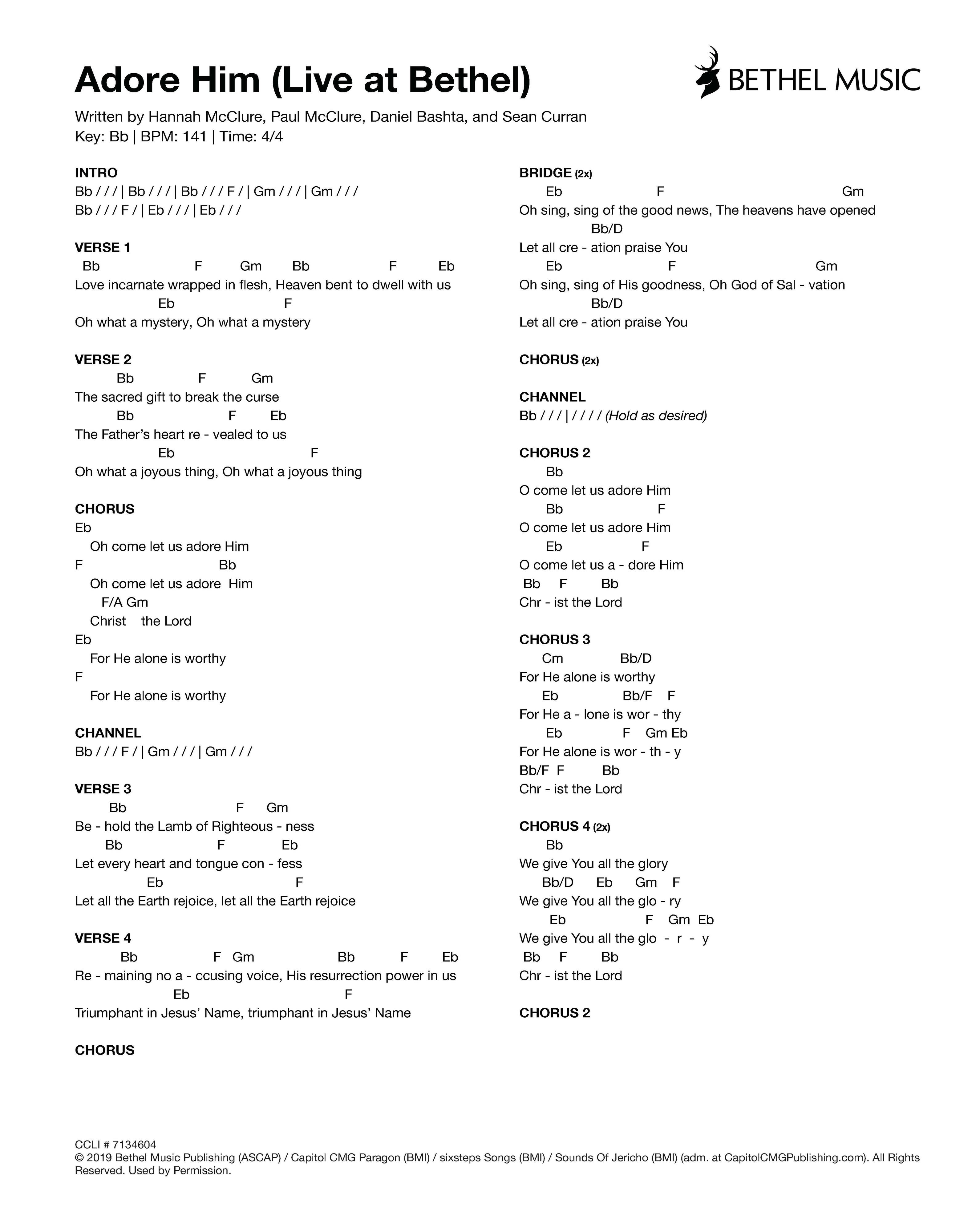 © 2019 Bethel Music Publishing (ASCAP) / Capitol CMG Paragon (BMI) / sixsteps Songs (BMI) / Sounds Of Jericho (BMI) (adm. at CapitolCMGPublishing.com). All Rights Reserved. Used by Permission.