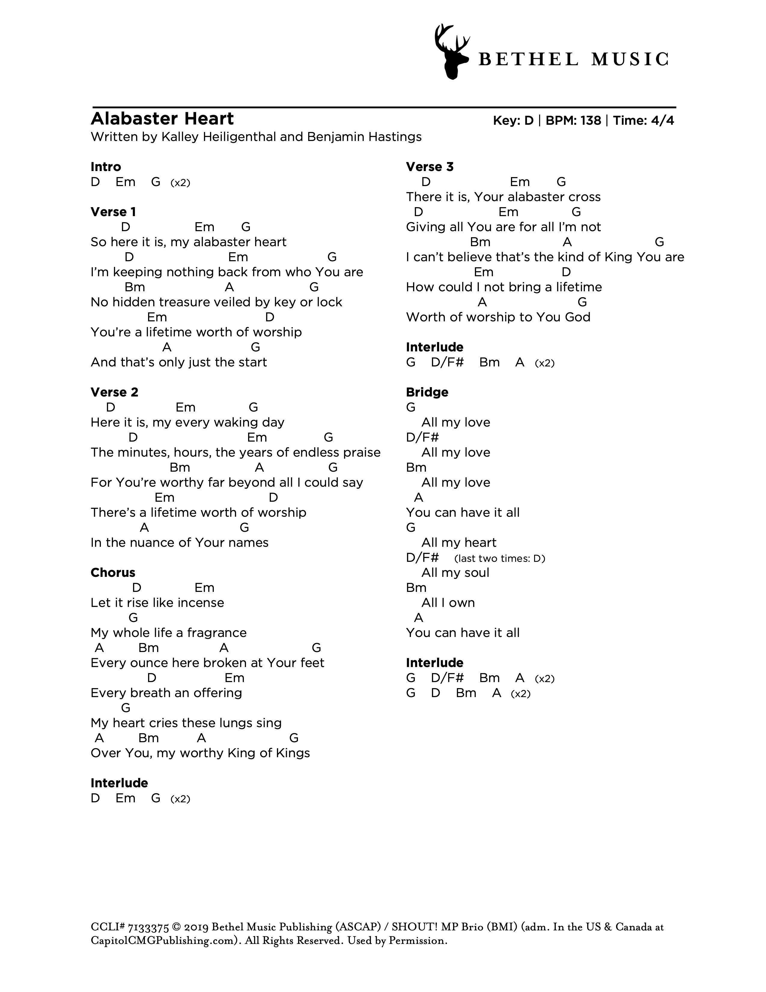 © 2019 Bethel Music Publishing (ASCAP) / SHOUT MP Brio (BMI) (adm. In the US & Canada at CapitolCMGPublishing.com). All Rights Reserved. Used by Permission.