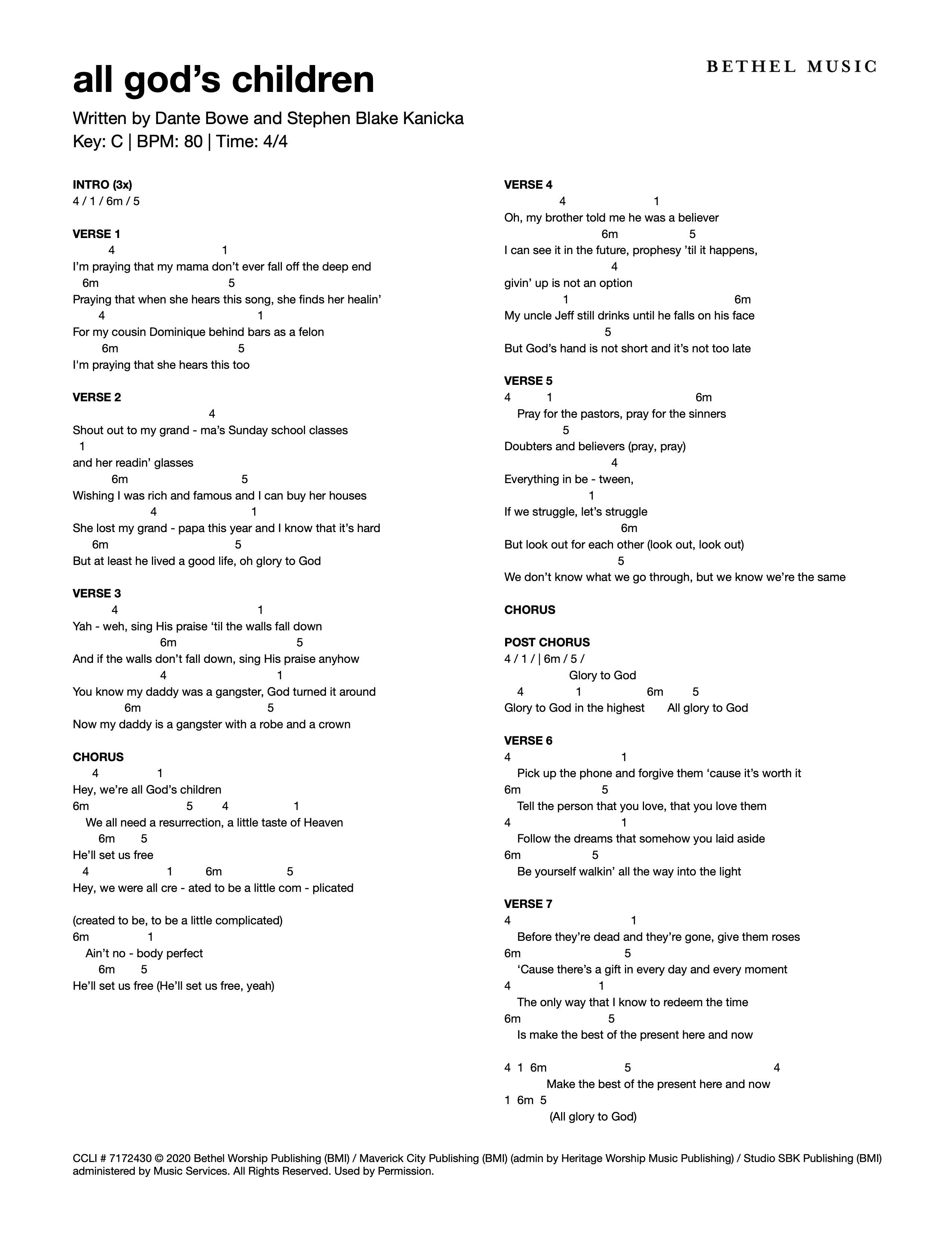 © 2020 Bethel Worship Publishing (BMI) / Maverick City Publishing (BMI) (admin by Heritage Worship Music Publishing) / Studio SBK Publishing (BMI) administered by Music Services. All Rights Reserved. Used by Permission.