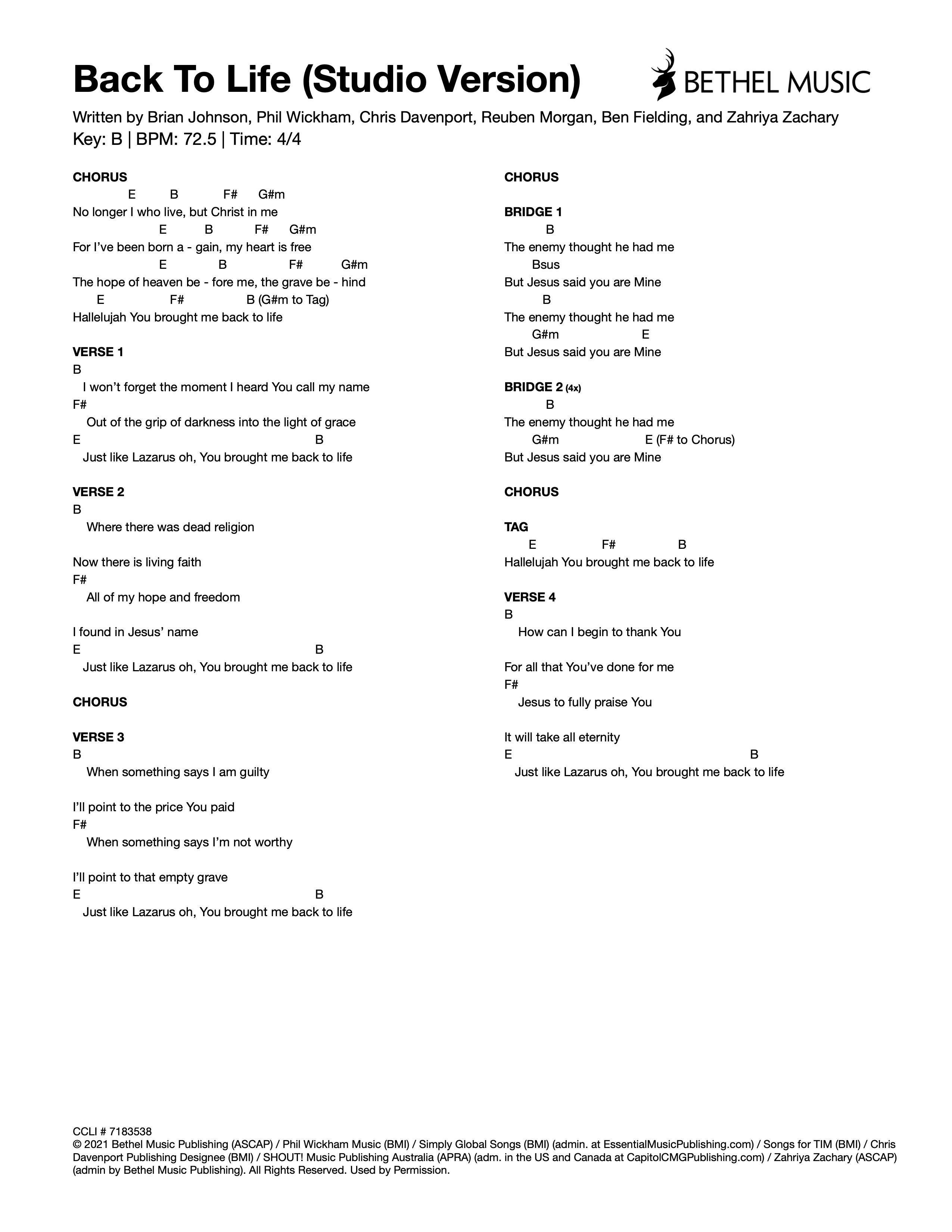 © 2021 Phil Wickham Music (BMI) / Simply Global Songs (BMI) (admin. at EssentialMusicPublishing.com) / Bethel Music Publishing (ASCAP) / Brian and Jenn Publishing (ASCAP) / Songs for TIM (BMI) / Chris Davenport Publishing Designee (BMI) / SHOUT! Music Publishing Australia (APRA) (adm. in the US and Canada at CapitolCMGPublishing.com) / Zahriya Zachary (ASCAP) (admin by Bethel Music Publishing). All Rights Reserved. Used by Permission.