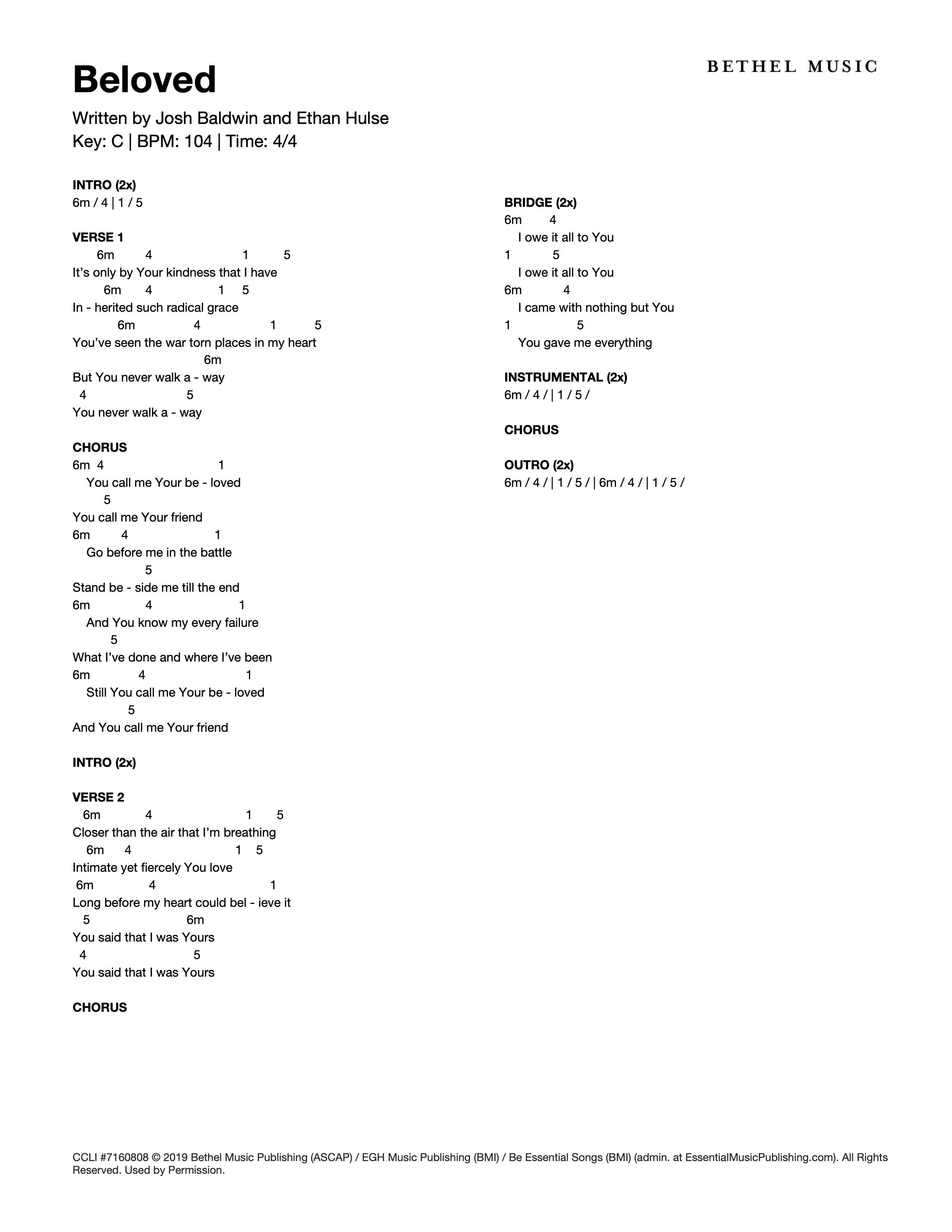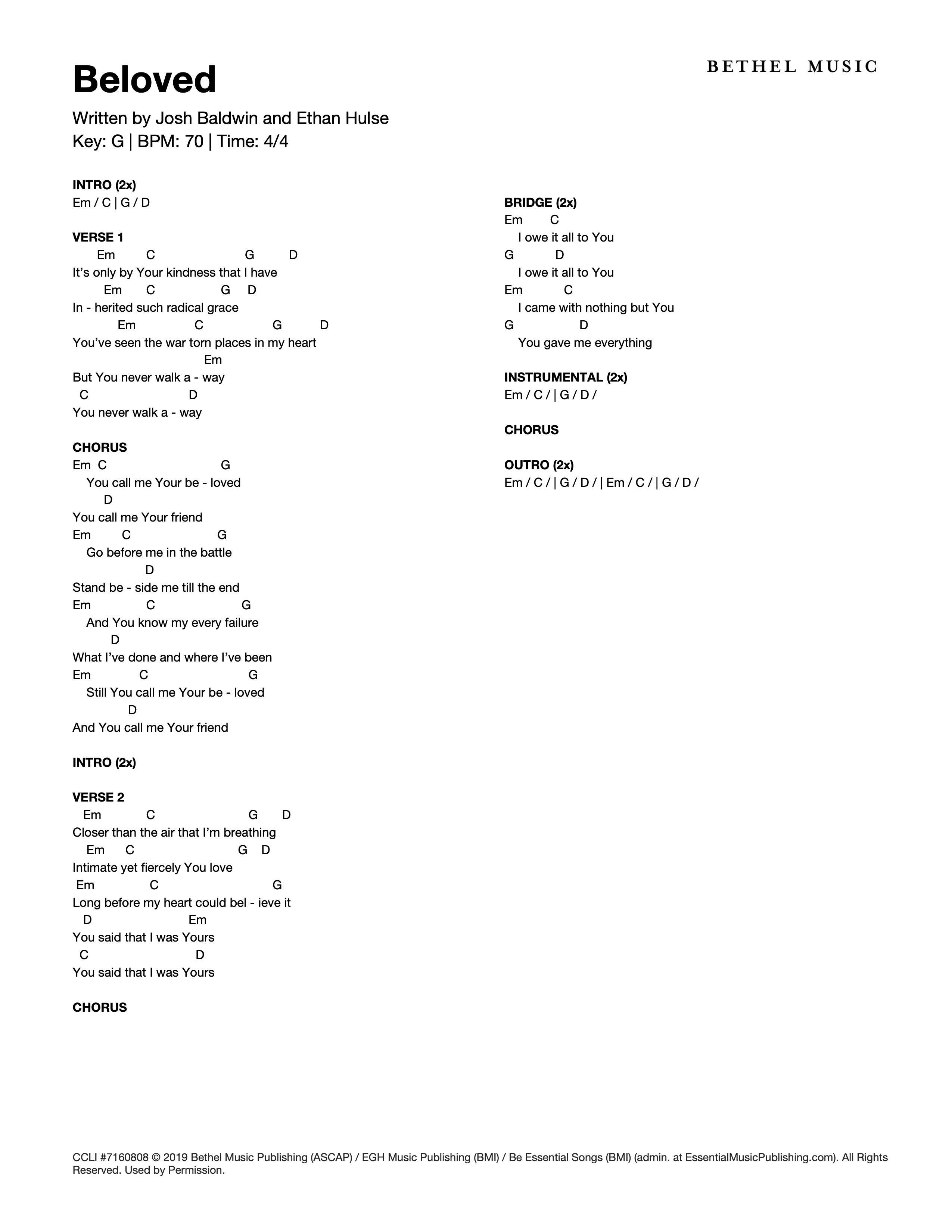 © 2019 Bethel Music Publishing (ASCAP) / EGH Music Publishing (BMI) / Be Essential Songs (BMI) (admin. at EssentialMusicPublishing.com). All Rights Reserved. Used by Permission.
