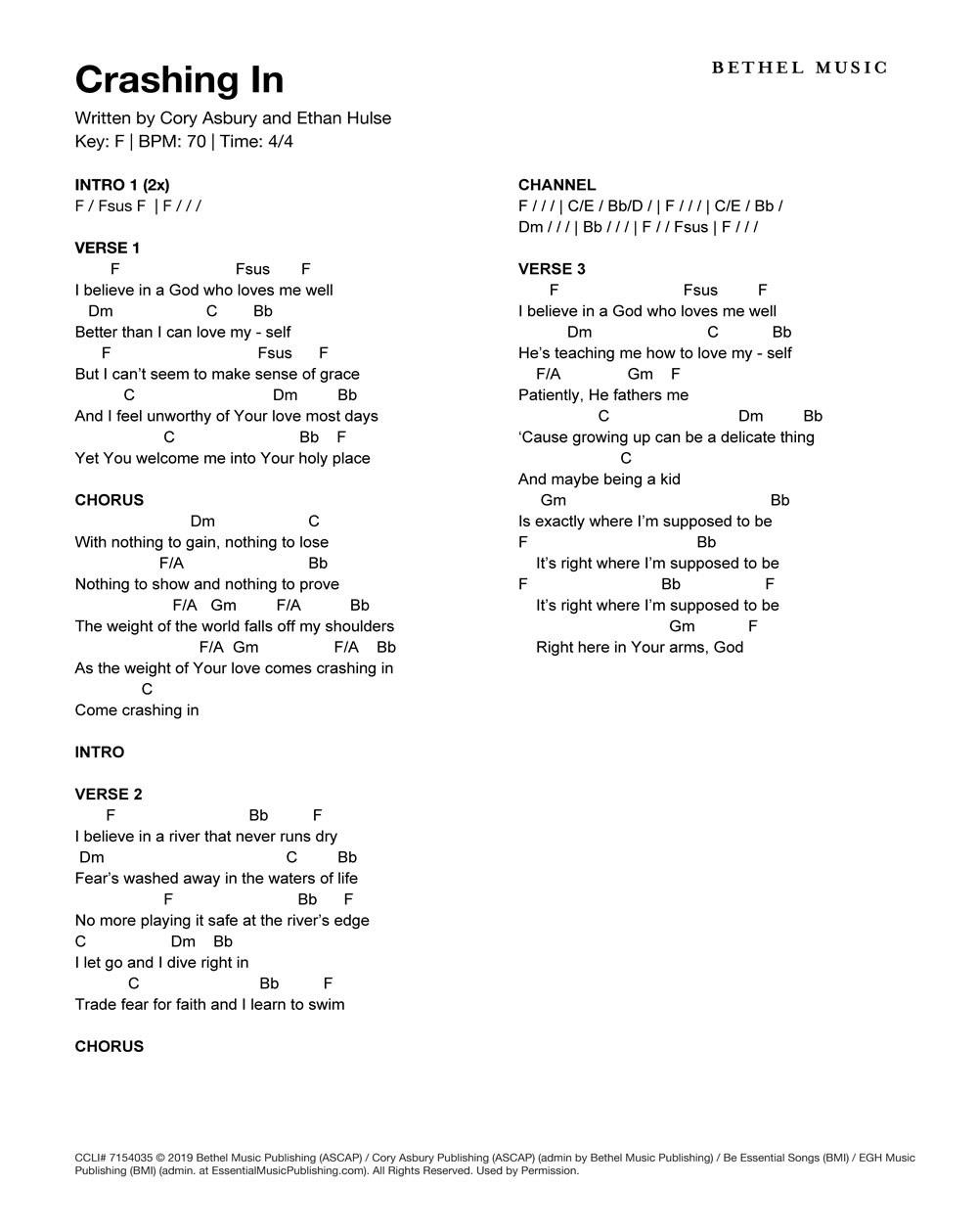 © 2019 Bethel Music Publishing (ASCAP) / Cory Asbury Publishing (ASCAP) (admin by Bethel Music Publishing) / Be Essential Songs (BMI) / EGH Music Publishing (BMI) (admin. at EssentialMusicPublishing.com). All Rights Reserved. Used by Permission.
