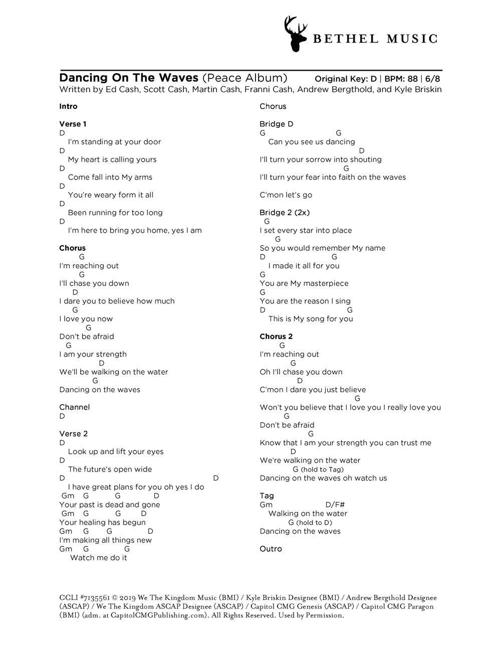 © 2019 We The Kingdom Music (BMI) / Kyle Briskin Designee (BMI) / Andrew Bergthold Designee (ASCAP) / We The Kingdom ASCAP Designee (ASCAP) / Capitol CMG Genesis (ASCAP) / Capitol CMG Paragon (BMI) (adm. at CapitolCMGPublishing.com). All Rights Reserved. Used by Permission.