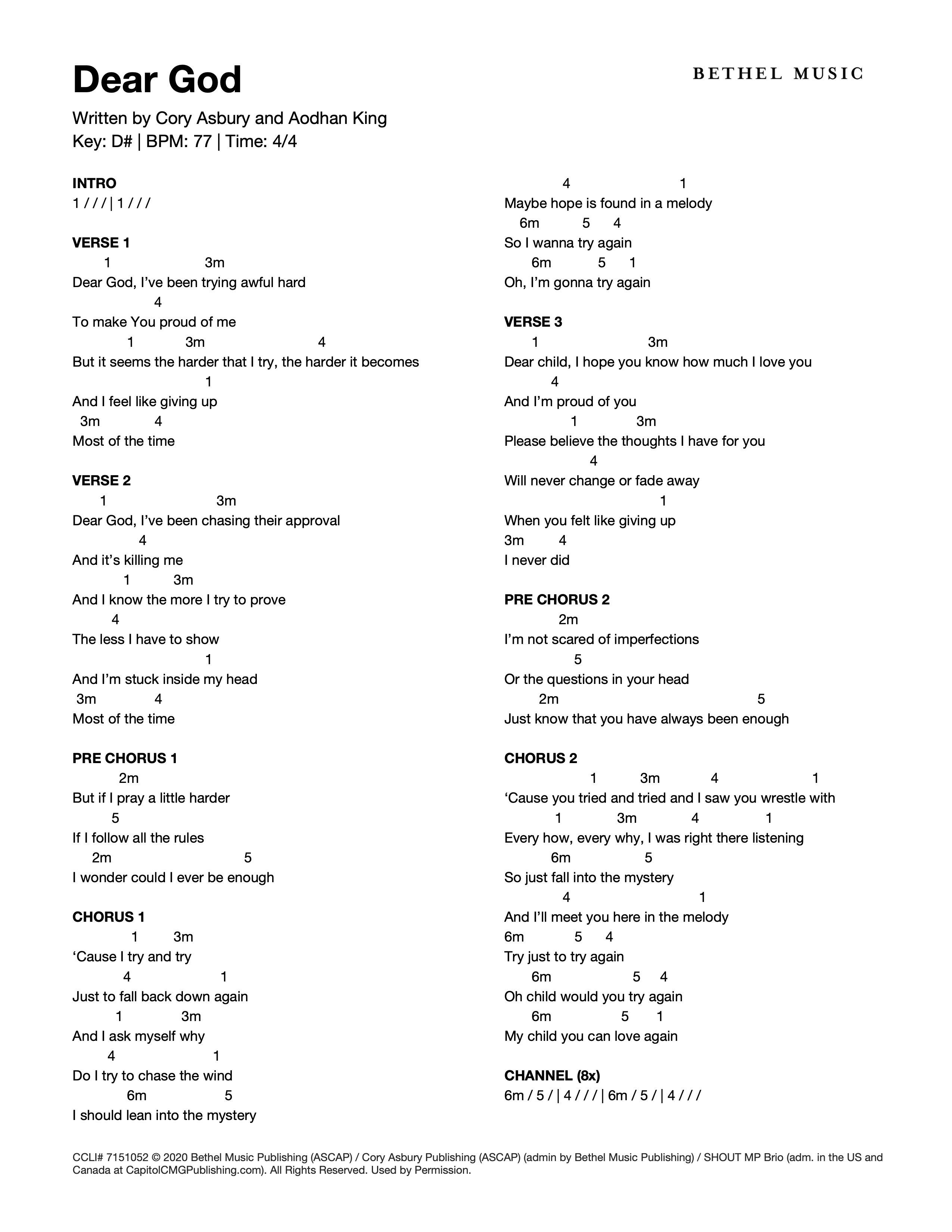 © 2020 Bethel Music Publishing (ASCAP) / Cory Asbury Publishing (ASCAP) (admin by Bethel Music Publishing) / SHOUT MP Brio (adm. in the US and Canada at CapitolCMGPublishing.com). All Rights Reserved. Used by Permission.
