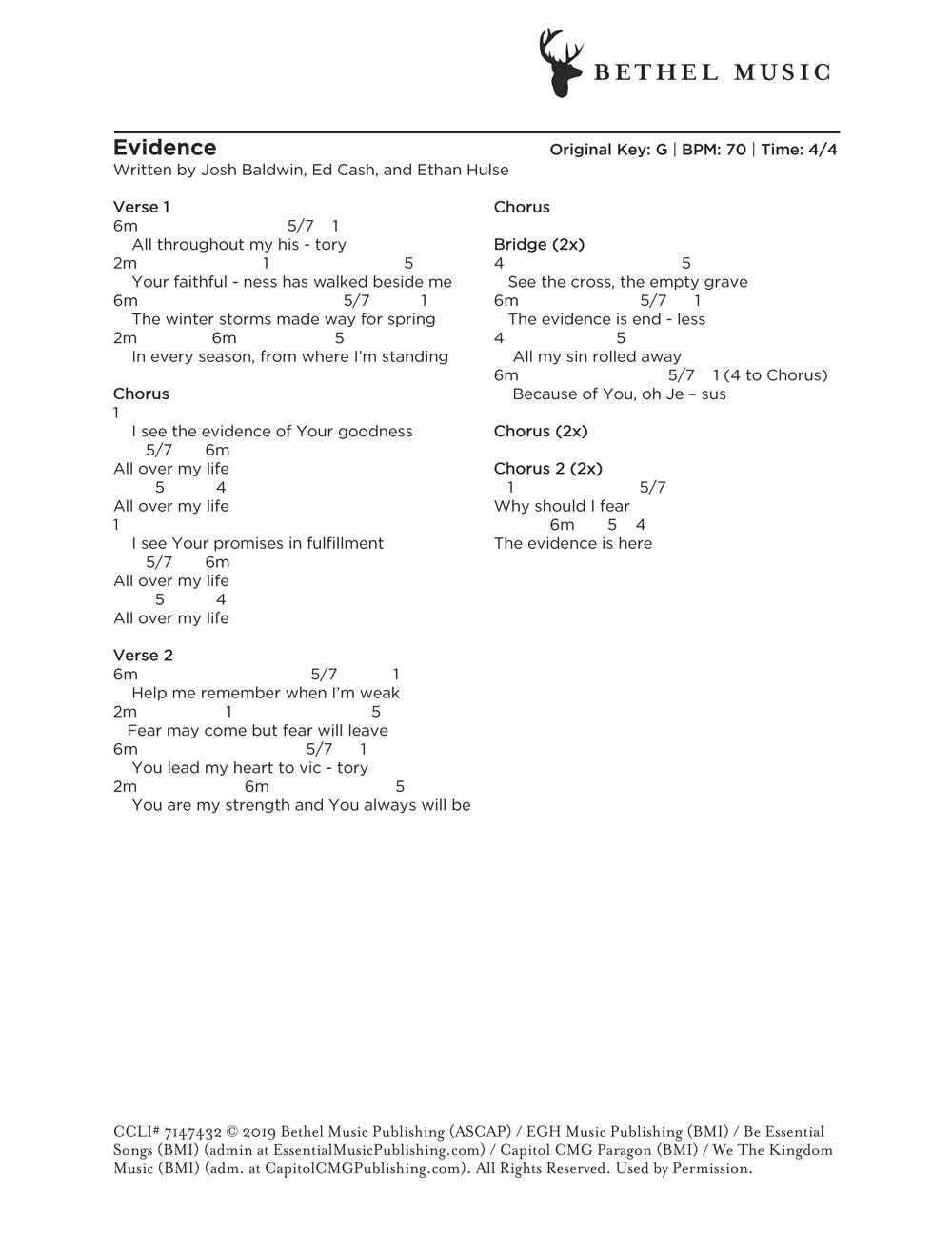 © 2019 Bethel Music Publishing (ASCAP) / EGH Music Publishing (BMI) / Be Essential Songs (BMI) (admin at EssentialMusicPublishing.com) / Capitol CMG Paragon (BMI) / We The Kingdom Music (BMI) (adm. at CapitolCMGPublishing.com). All Rights Reserved. Used by Permission.