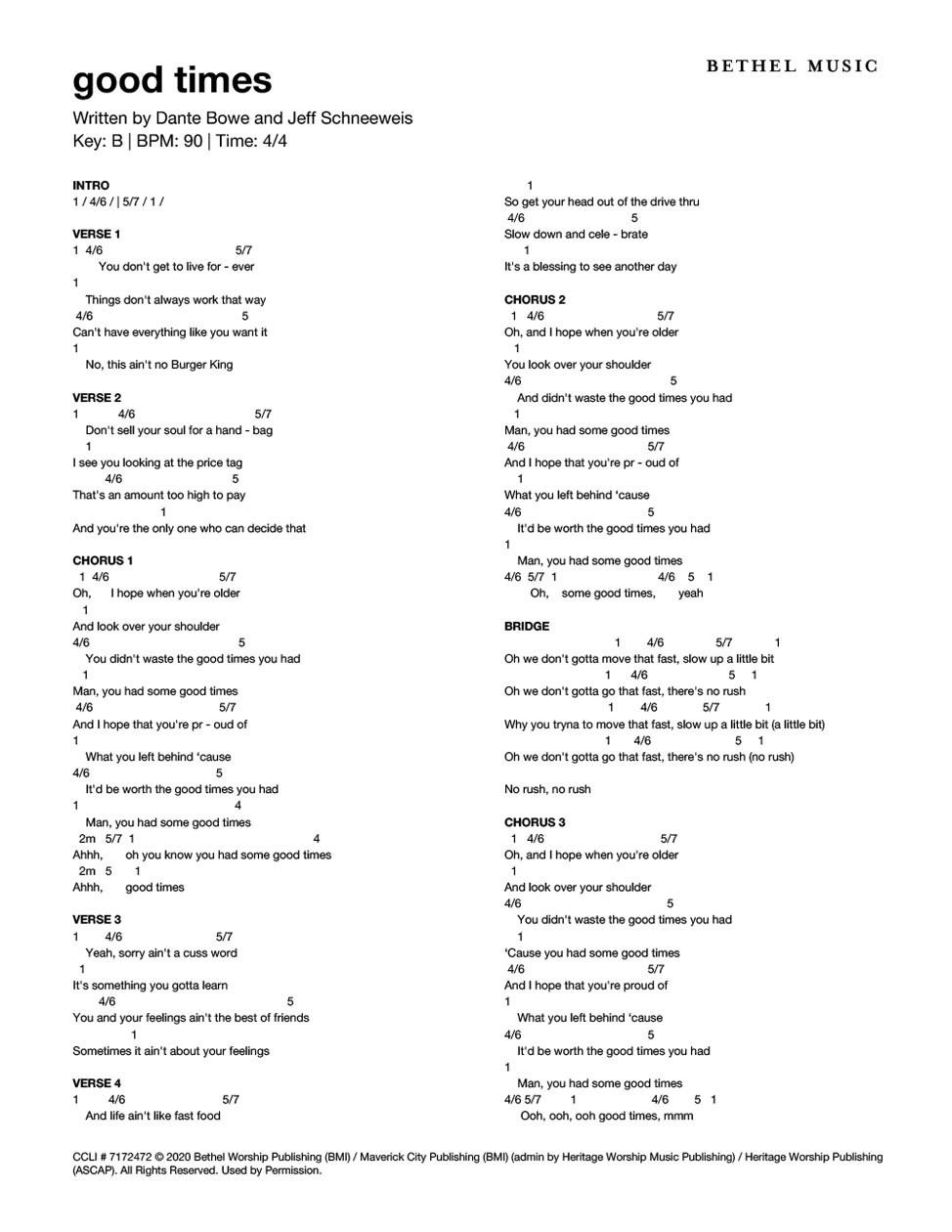 © 2020 Bethel Worship Publishing (BMI) / Maverick City Publishing (BMI) (admin by Heritage Worship Music Publishing) / Heritage Worship Publishing (ASCAP). All Rights Reserved. Used by Permission.