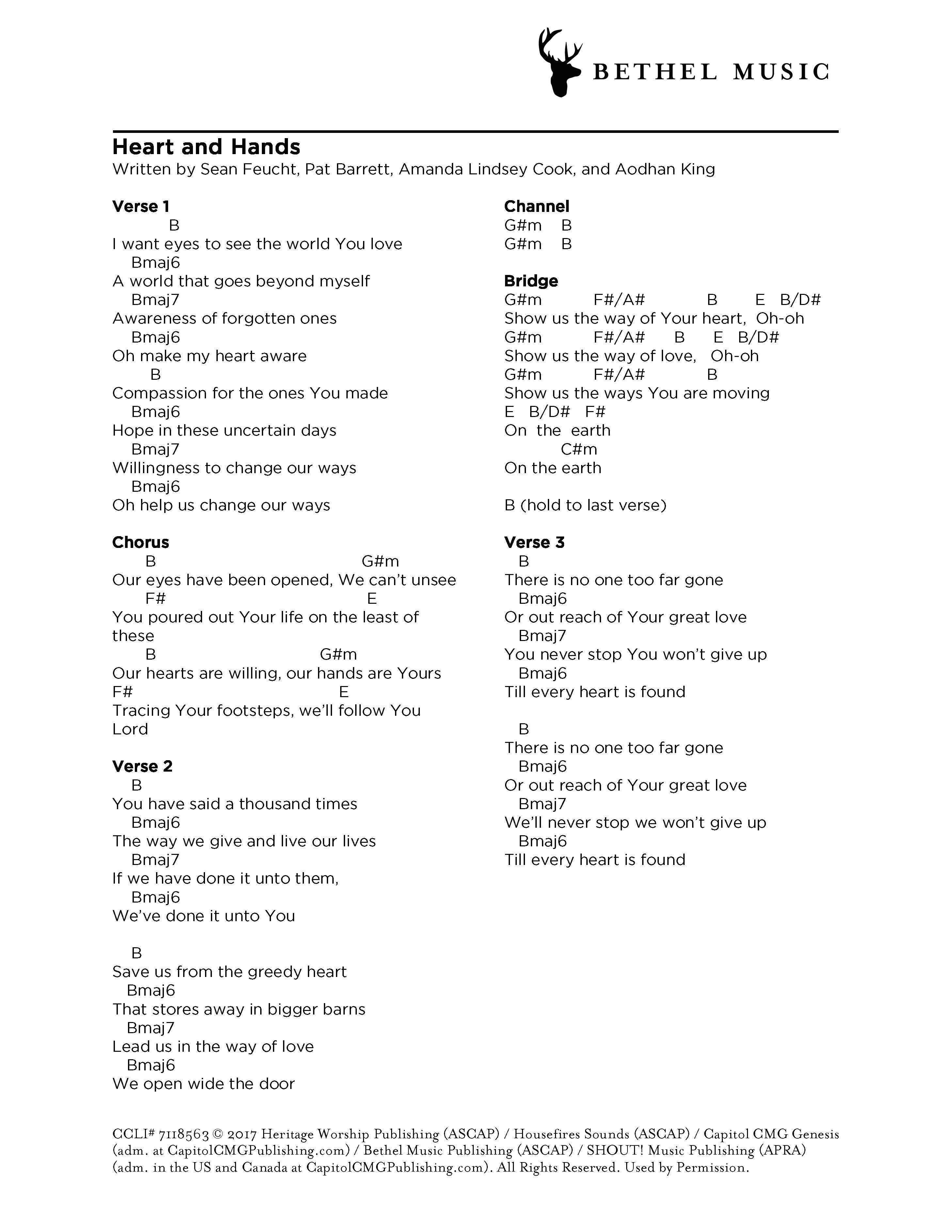 © 2017 Heritage Worship Publishing (ASCAP) / Housefires Sounds (ASCAP) / Capitol CMG Genesis (adm. at CapitolCMGPublishing.com) / Bethel Music Publishing (ASCAP) / SHOUT! Music Publishing (APRA) (adm. in the US and Canada at CapitolCMGPublishing.com). All Rights Reserved. Used by Permission.