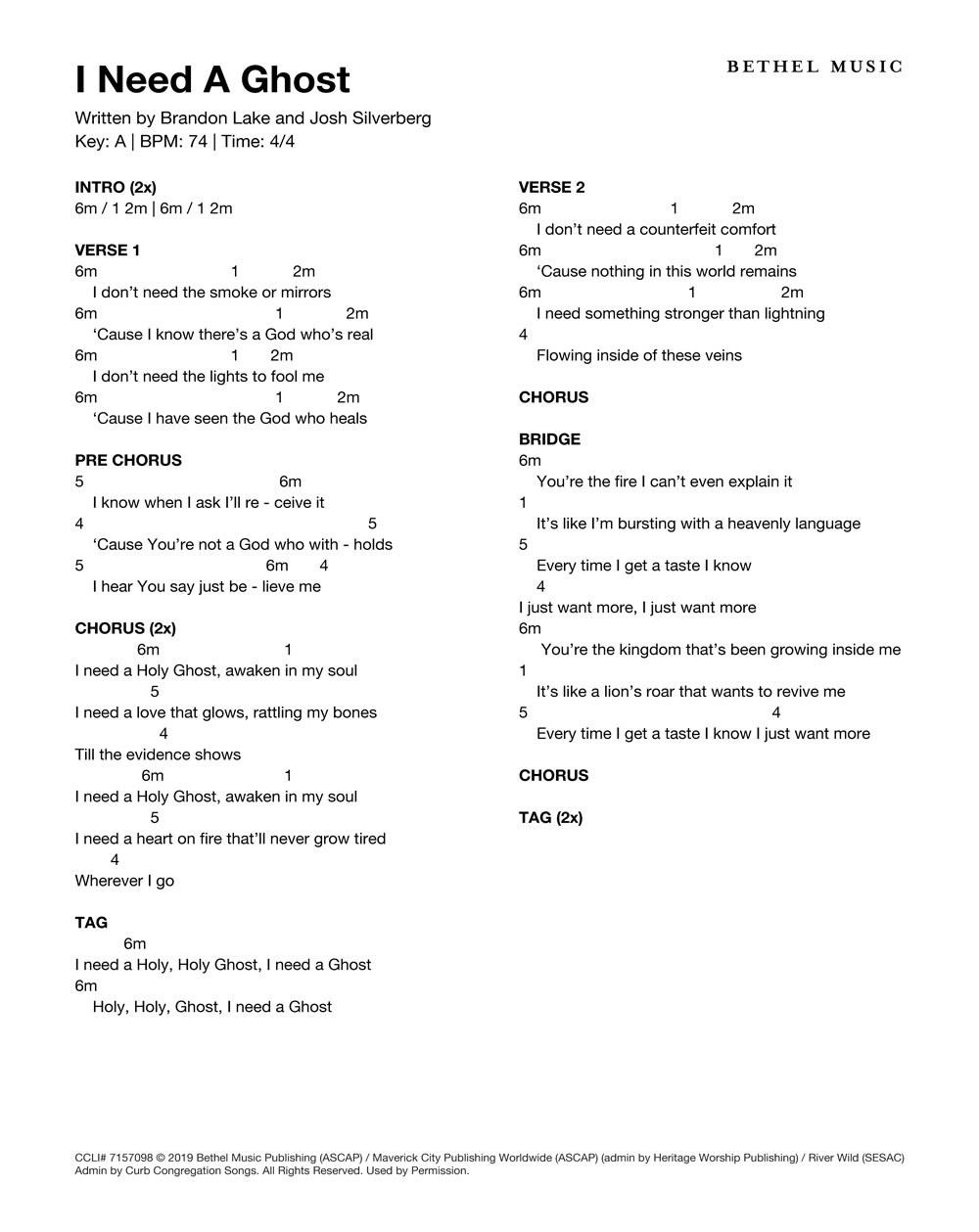 © 2019 Bethel Music Publishing (ASCAP) / Maverick City Publishing Worldwide (ASCAP) (admin by Heritage Worship Publishing) / Brandon Lake Music (ASCAP) (admin by Bethel Music Publishing) / River Wild (SESAC) Admin by Curb Congregation Songs. All Rights Reserved. Used by Permission.