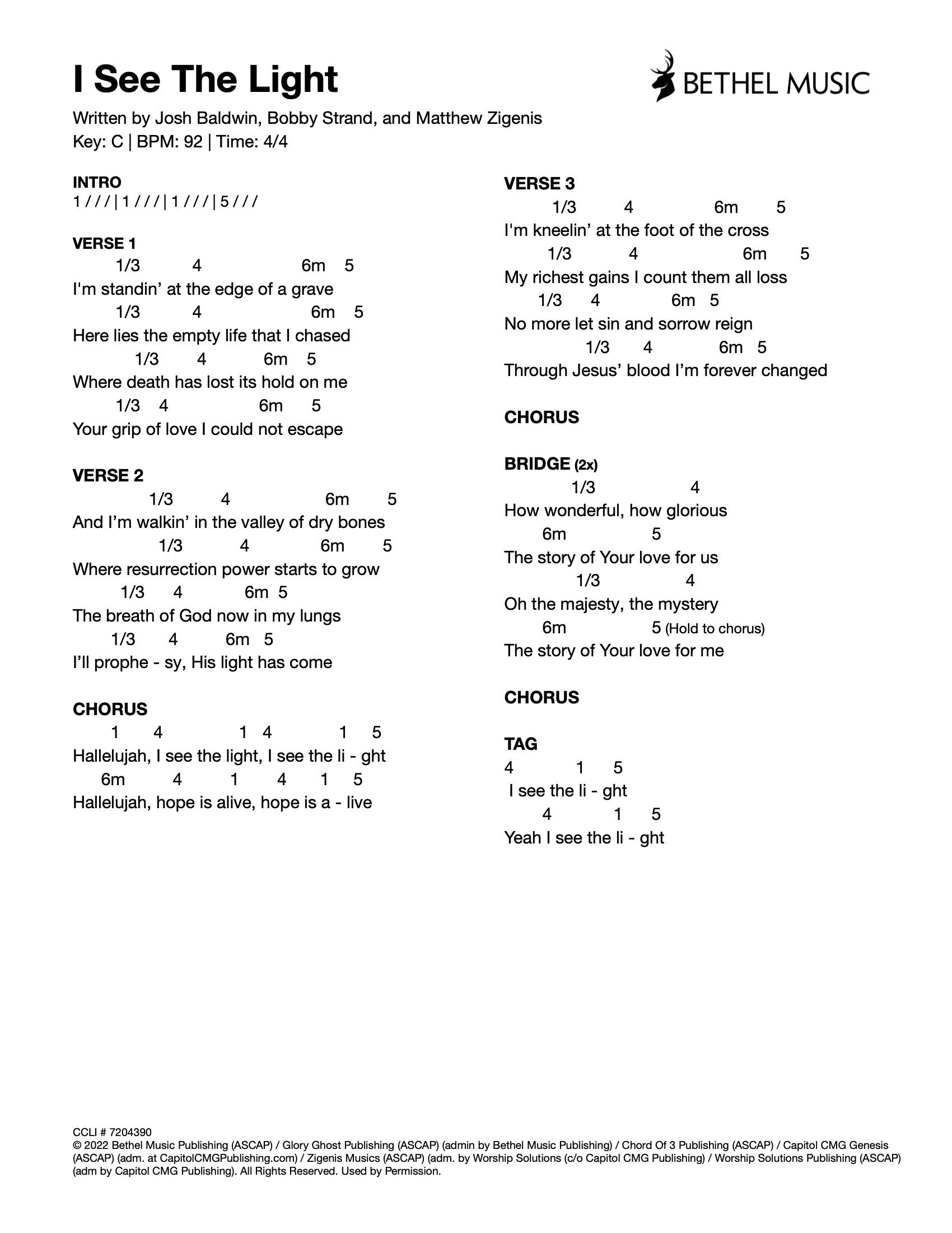 © 2022 Bethel Music Publishing (ASCAP) / Glory Ghost Publishing (ASCAP) (admin by Bethel Music Publishing) / Chord Of 3 Publishing (ASCAP) / Capitol CMG Genesis (ASCAP) (adm. at CapitolCMGPublishing.com) / Zigenis Musics (ASCAP) (adm. by Worship Solutions (c/o Capitol CMG Publishing) / Worship Solutions Publishing (ASCAP) (adm by Capitol CMG Publishing). All Rights Reserved. Used by Permission.