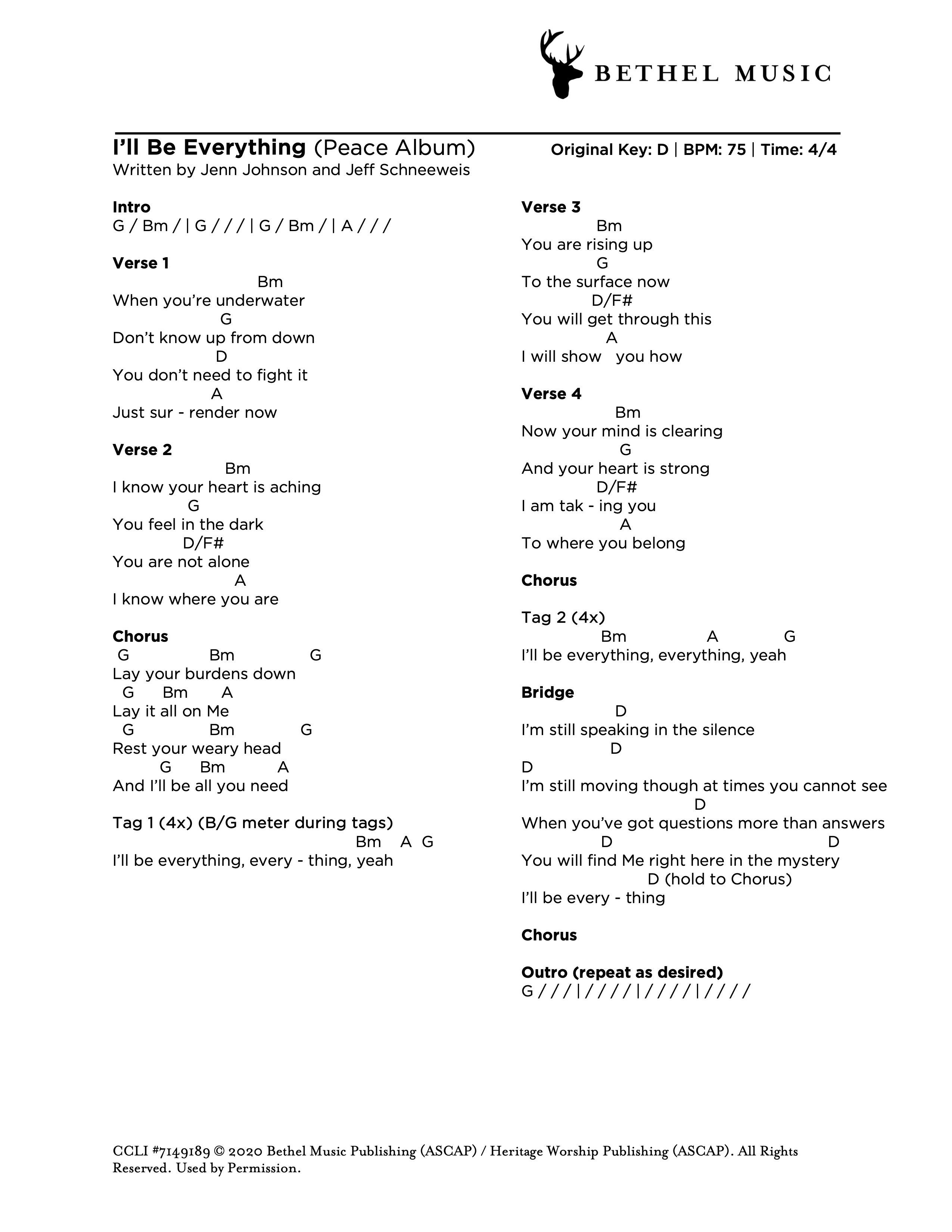 © 2020 Bethel Music Publishing (ASCAP) / Heritage Worship Publishing (ASCAP). All Rights Reserved. Used by Permission.