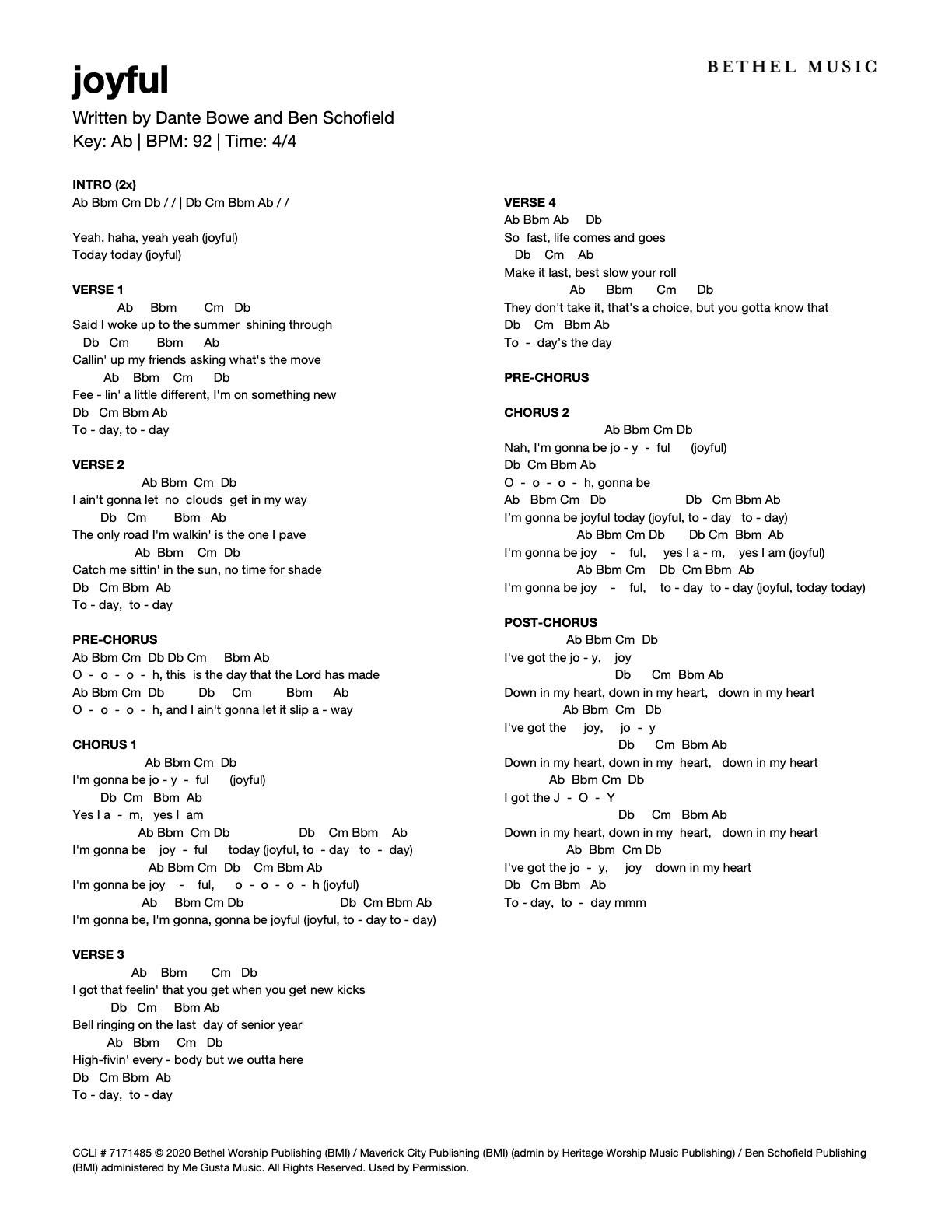 © 2020 Bethel Worship Publishing (BMI) / Maverick City Publishing (BMI) (admin by Heritage Worship Music Publishing) / Ben Schofield Publishing (BMI) administered by Me Gusta Music. All Rights Reserved. Used by Permission.