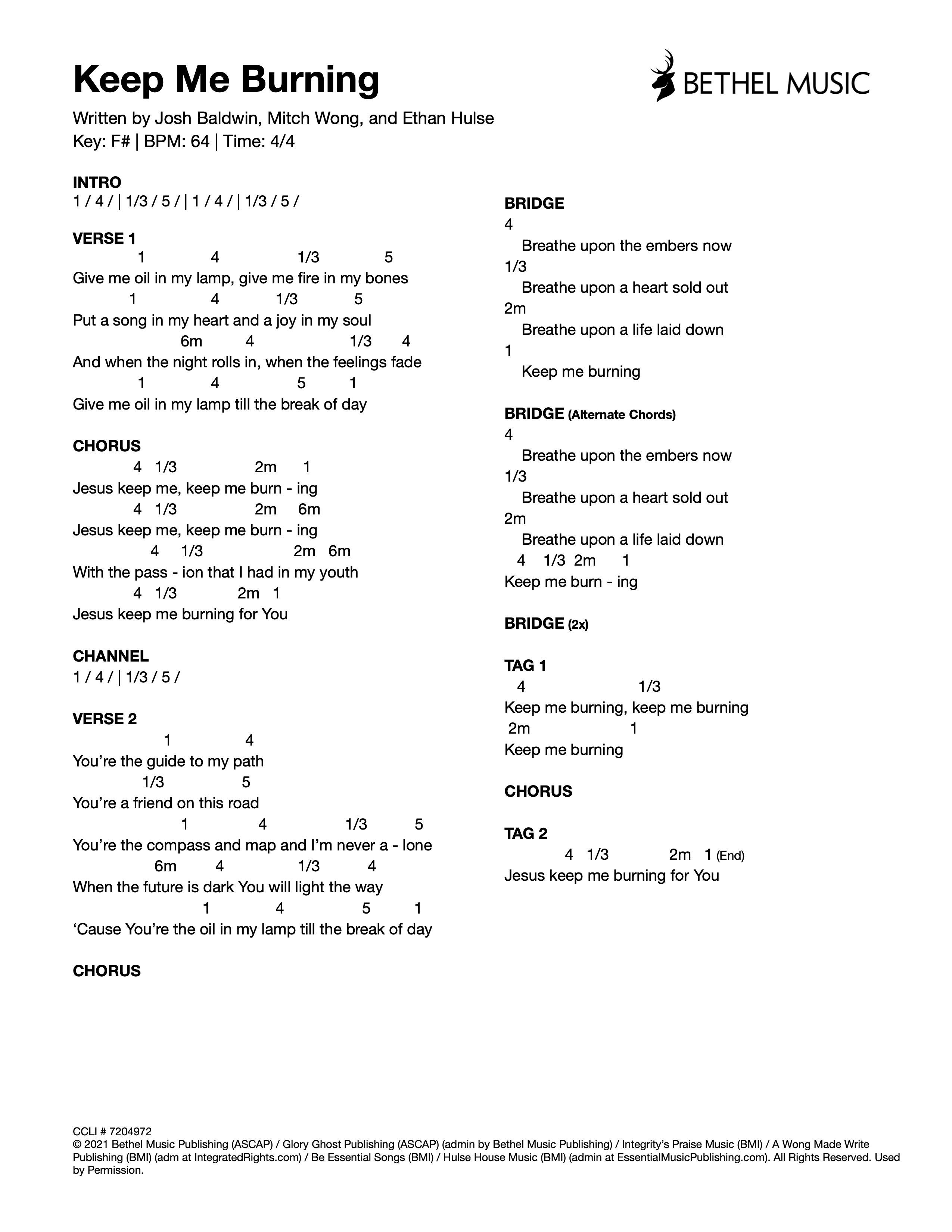 © 2021 Bethel Music Publishing (ASCAP) / Glory Ghost Publishing (ASCAP) (admin by Bethel Music Publishing) / Integrity’s Praise Music (BMI) / A Wong Made Write Publishing (BMI) (adm at IntegratedRights.com) / Be Essential Songs (BMI) / Hulse House Music (BMI) (admin at EssentialMusicPublishing.com). All Rights Reserved. Used by Permission.