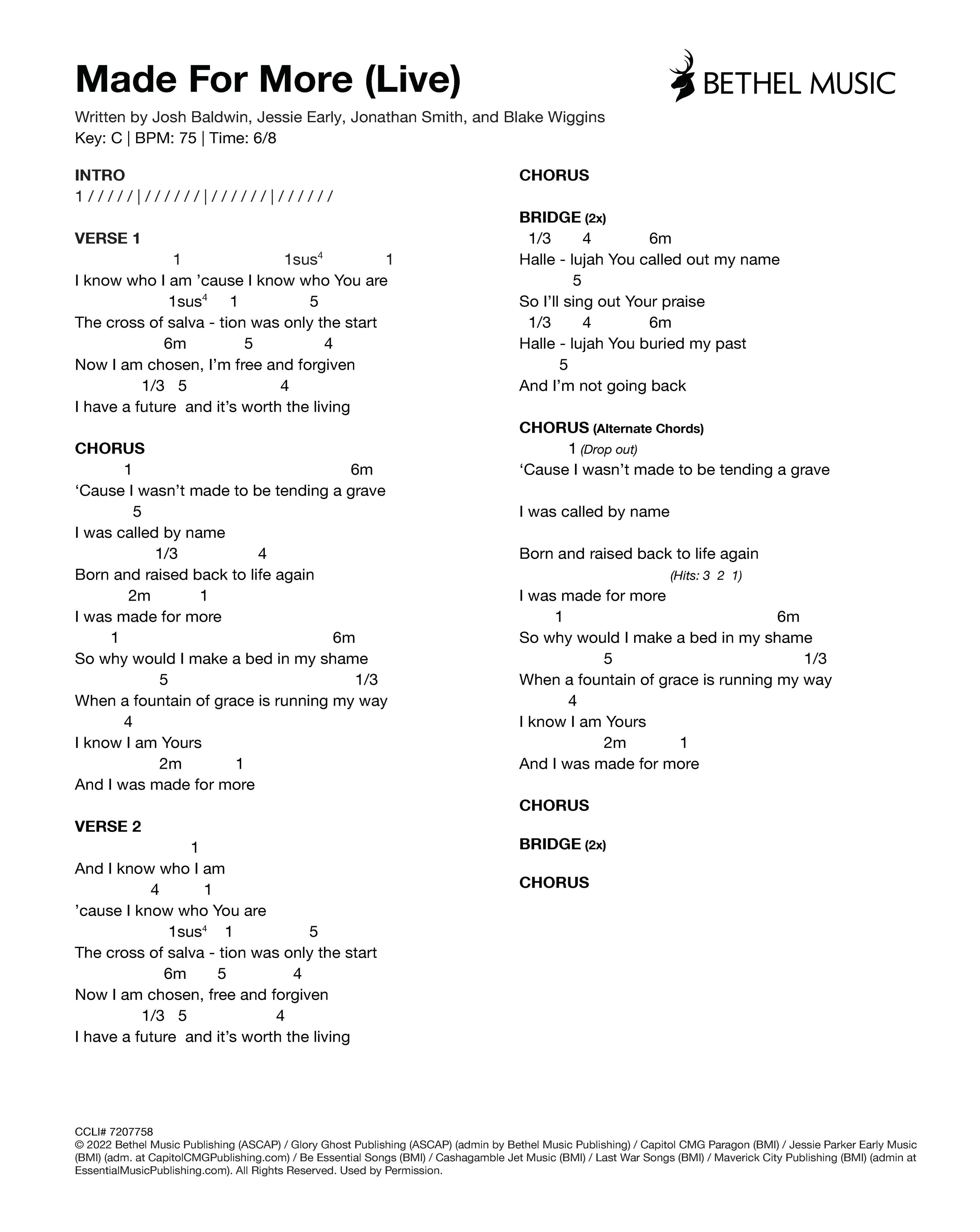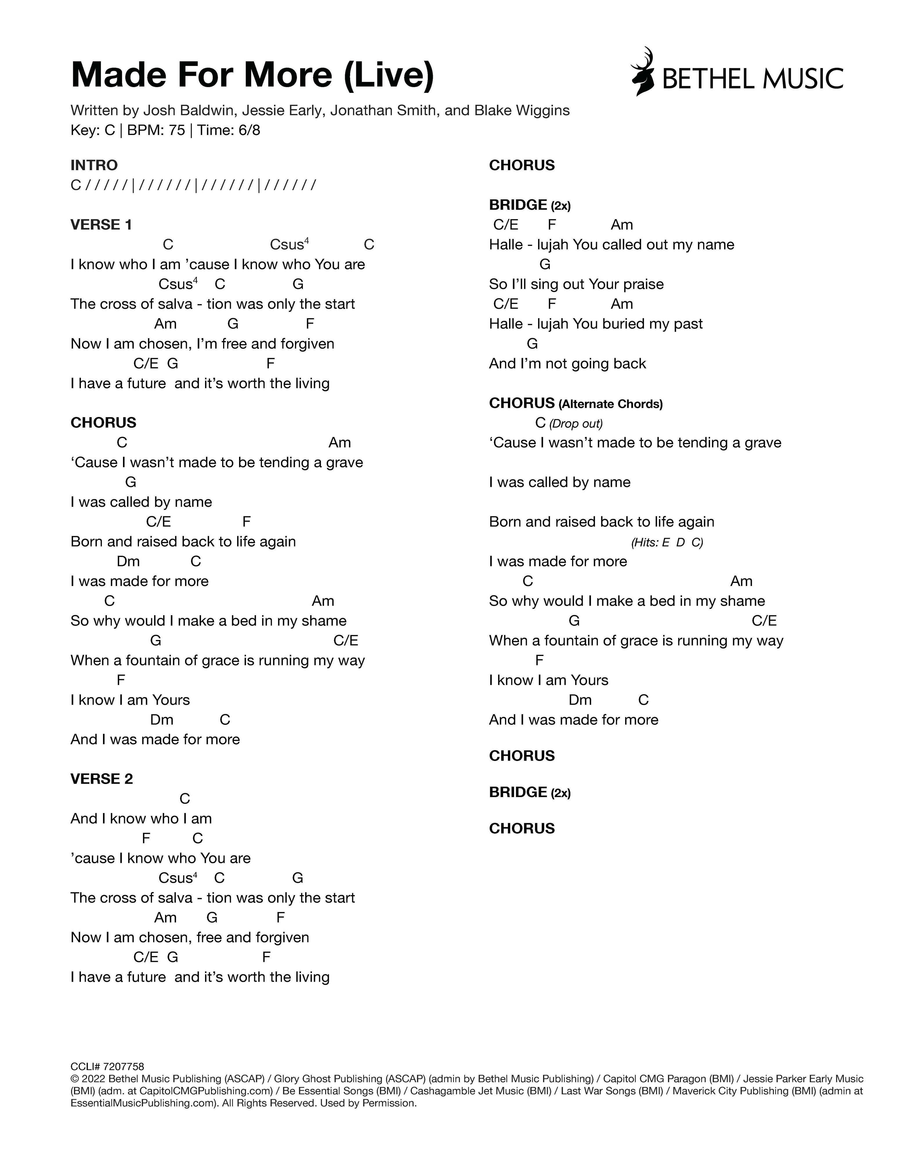 © 2022 Bethel Music Publishing (ASCAP) / Glory Ghost Publishing (ASCAP) (admin by Bethel Music Publishing) / Capitol CMG Paragon (BMI) / Jessie Parker Early Music (BMI) (adm. at CapitolCMGPublishing.com) / Be Essential Songs (BMI) / Cashagamble Jet Music (BMI) / Last War Songs (BMI) / Maverick City Publishing (BMI) (admin at EssentialMusicPublishing.com). All Rights Reserved. Used by Permission.