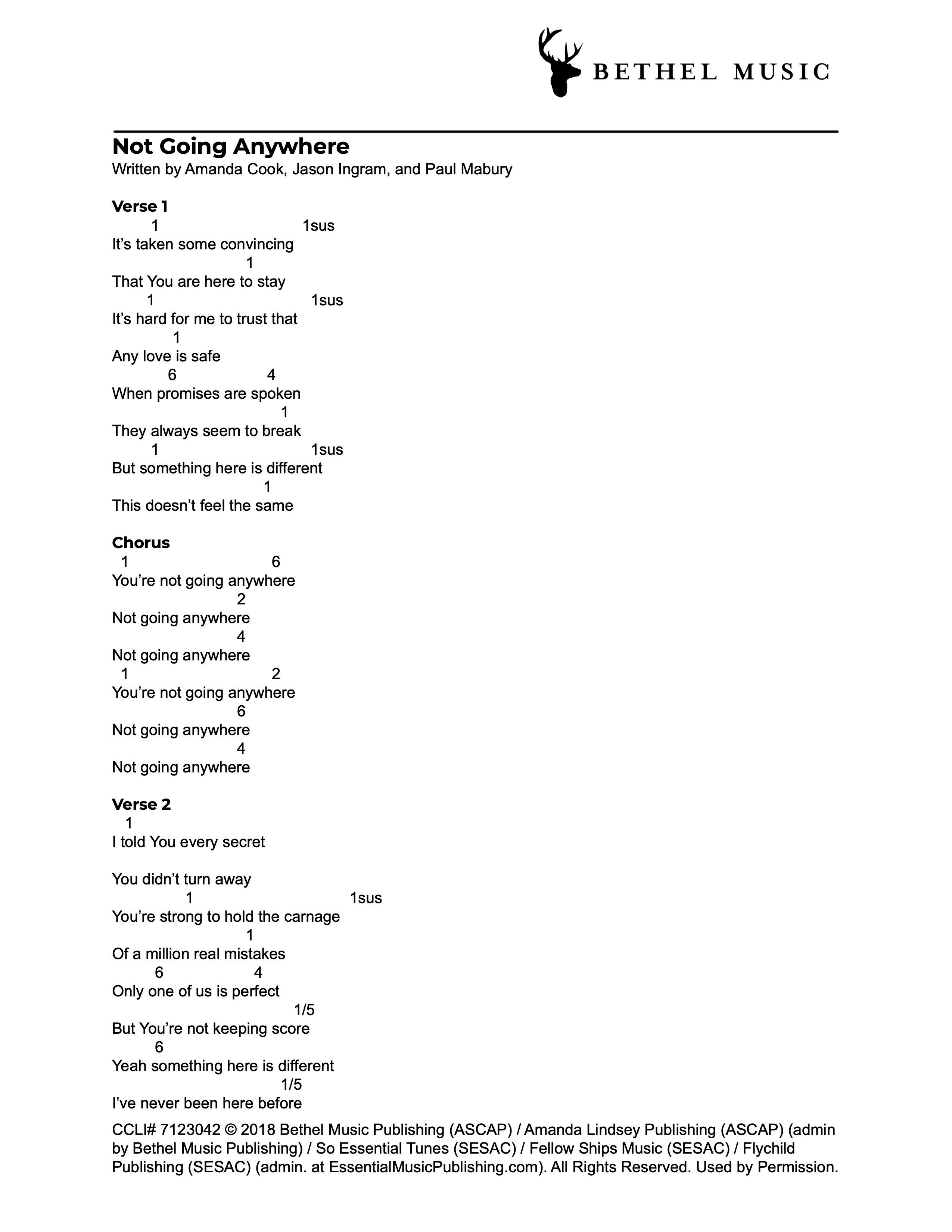 © 2018 Bethel Music Publishing (ASCAP) / Amanda Lindsey Publishing (ASCAP) (admin by Bethel Music Publishing) / So Essential Tunes (SESAC) / Fellow Ships Music (SESAC) / Flychild Publishing (SESAC) (admin. at EssentialMusicPublishing.com). All Rights Reserved. Used by Permission.