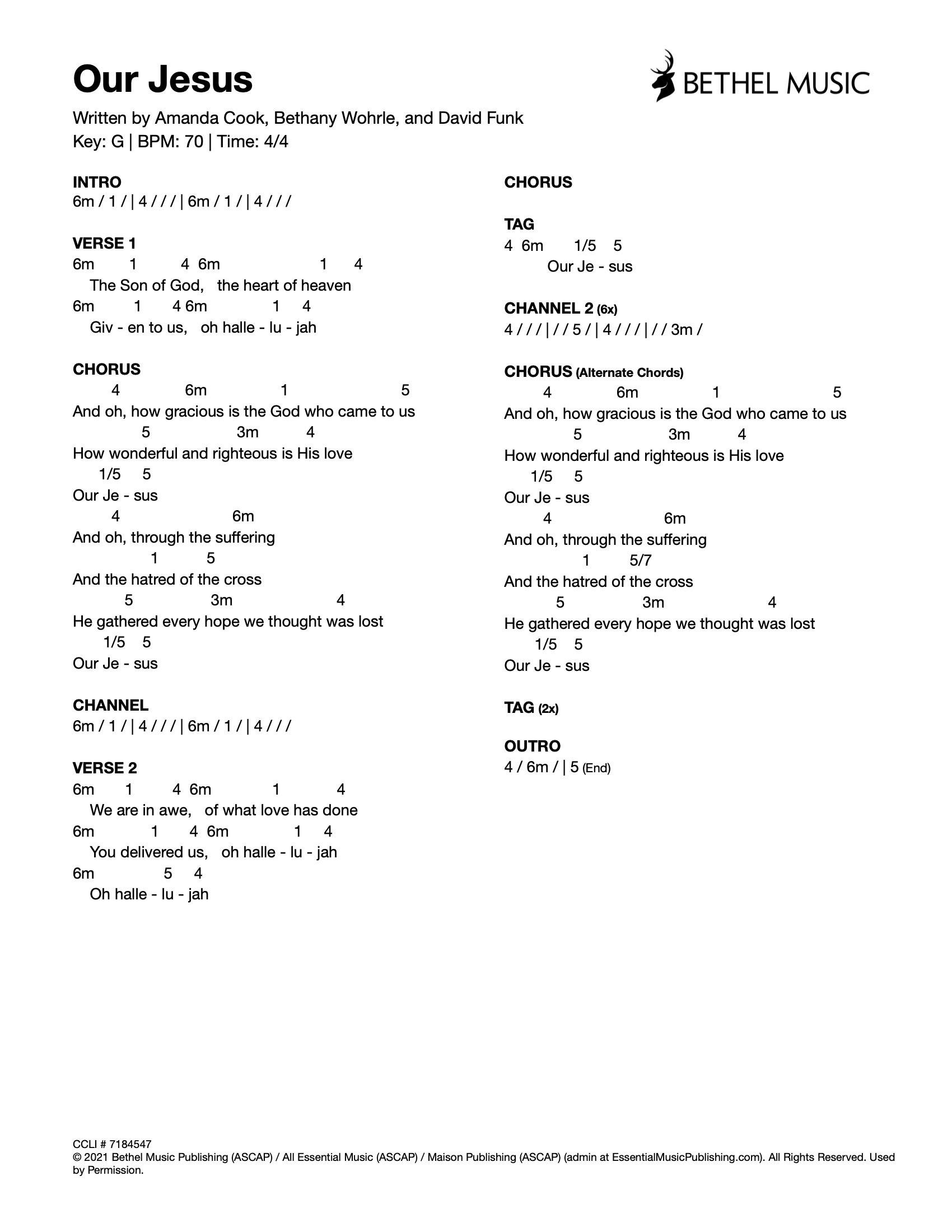 © 2021 Bethel Music Publishing (ASCAP) / All Essential Music (ASCAP) / Maison Publishing (ASCAP) (admin at EssentialMusicPublishing.com). All Rights Reserved. Used by Permission.