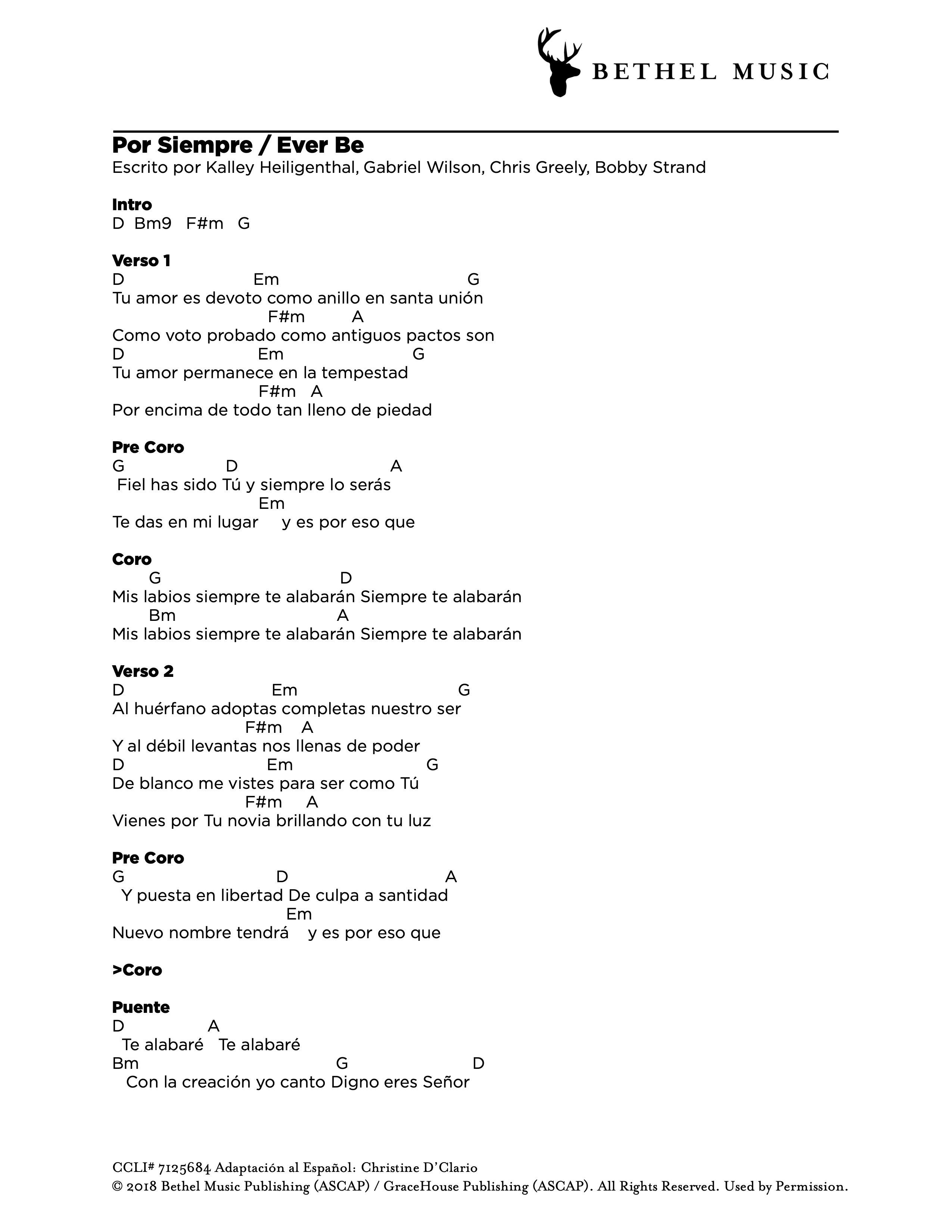 Adaptación al Español: Christine D’Clario © 2018 Bethel Music Publishing (ASCAP) / Aliento Music Group (ASCAP). All Rights Reserved. Used by Permission.