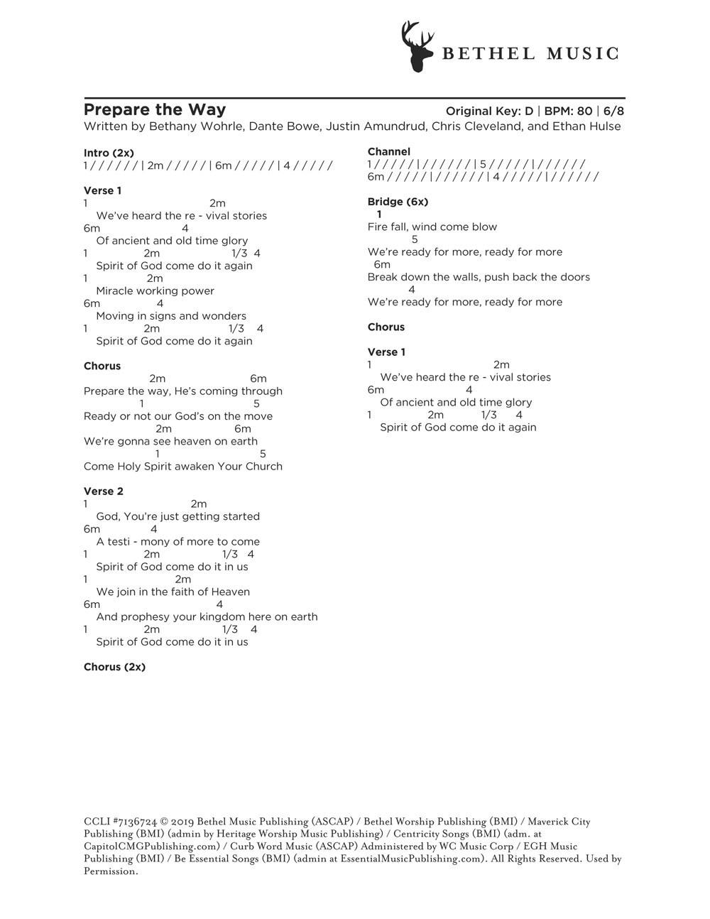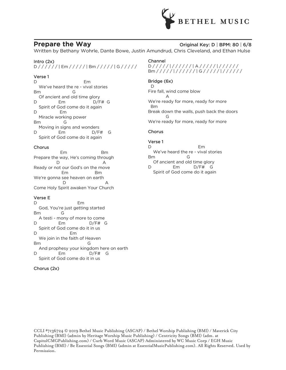 © 2019 Bethel Music Publishing (ASCAP) / Bethel Worship Publishing (BMI) / Maverick City Publishing (BMI) (admin by Heritage Worship Music Publishing) / Centricity Songs (BMI) (adm. at CapitolCMGPublishing.com) / Curb Word Music (ASCAP) Administered by WC Music Corp / EGH Music Publishing (BMI) / Be Essential Songs (BMI) (admin at EssentialMusicPublishing.com. All Rights Reserved. Used by Permission.