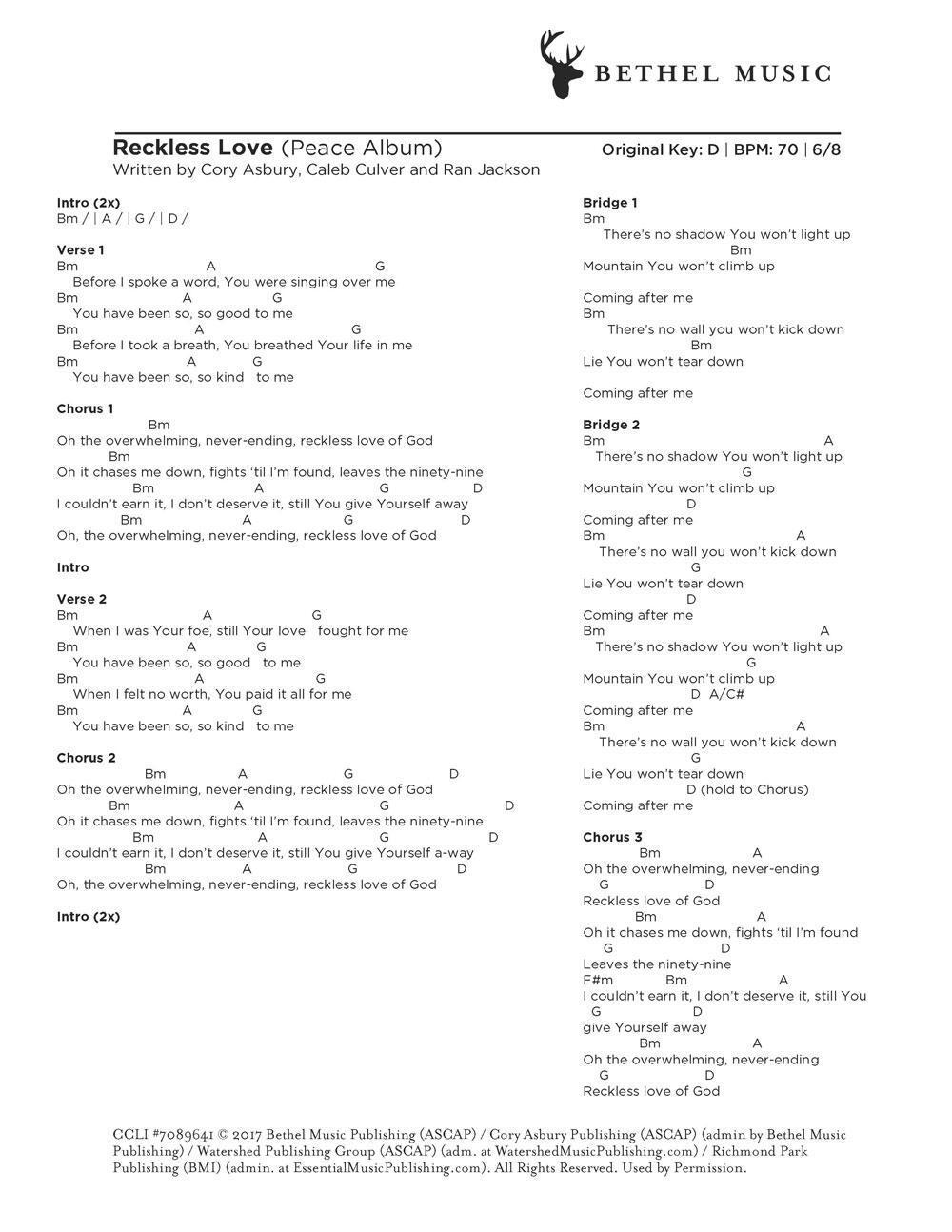 © 2017 Bethel Music Publishing (ASCAP) / Cory Asbury Publishing (ASCAP) (admin by Bethel Music Publishing) / Watershed Publishing Group (ASCAP) (adm. at WatershedMusicPublishing.com) / Richmond Park Publishing (BMI) (admin. at EssentialMusicPublishing.com). All Rights Reserved. Used by Permission.