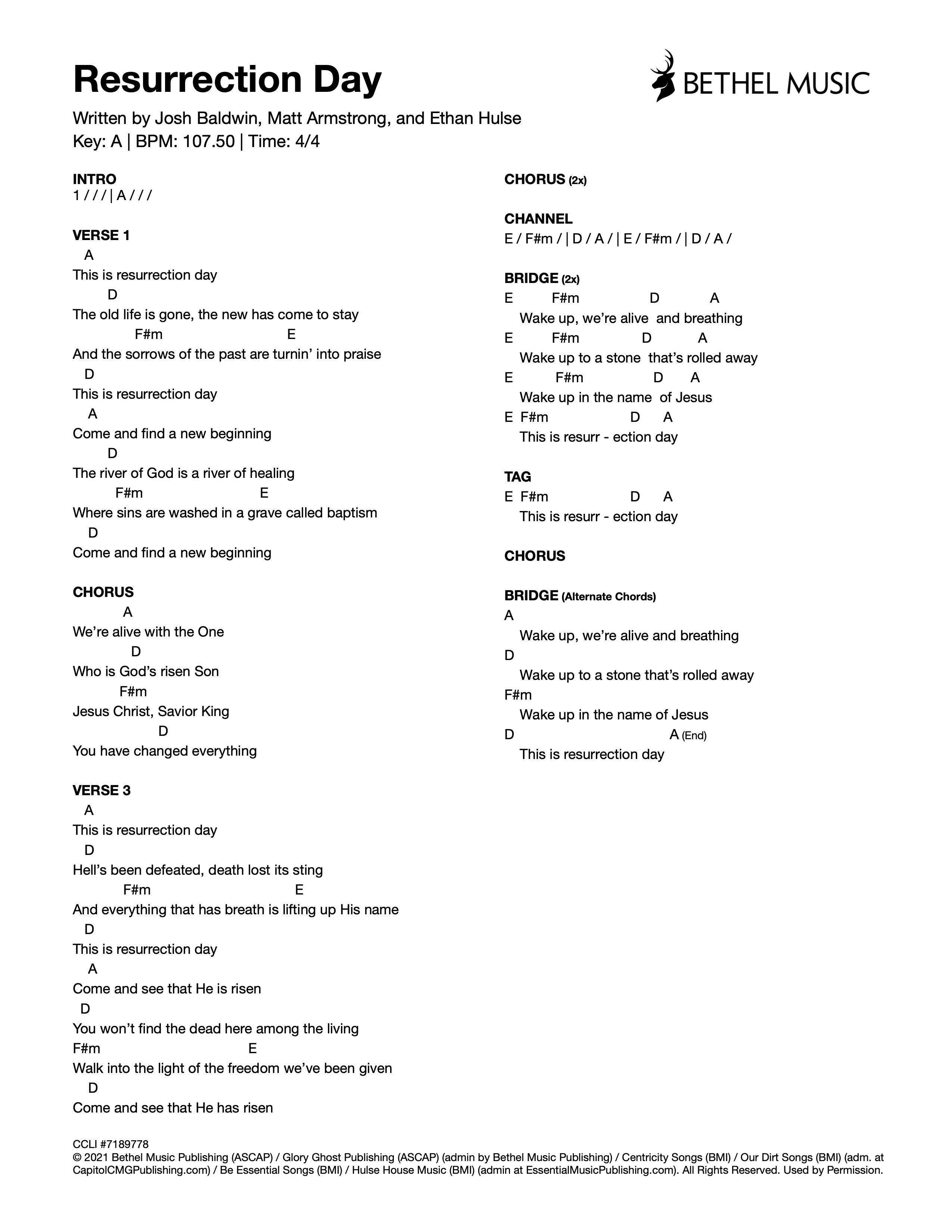© 2021 Bethel Music Publishing (ASCAP) / Glory Ghost Publishing (ASCAP) (admin by Bethel Music Publishing) / Centricity Songs (BMI) / Our Dirt Songs (BMI) (adm. at CapitolCMGPublishing.com) / Be Essential Songs (BMI) / Hulse House Music (BMI) (admin at EssentialMusicPublishing.com). All Rights Reserved. Used by Permission.