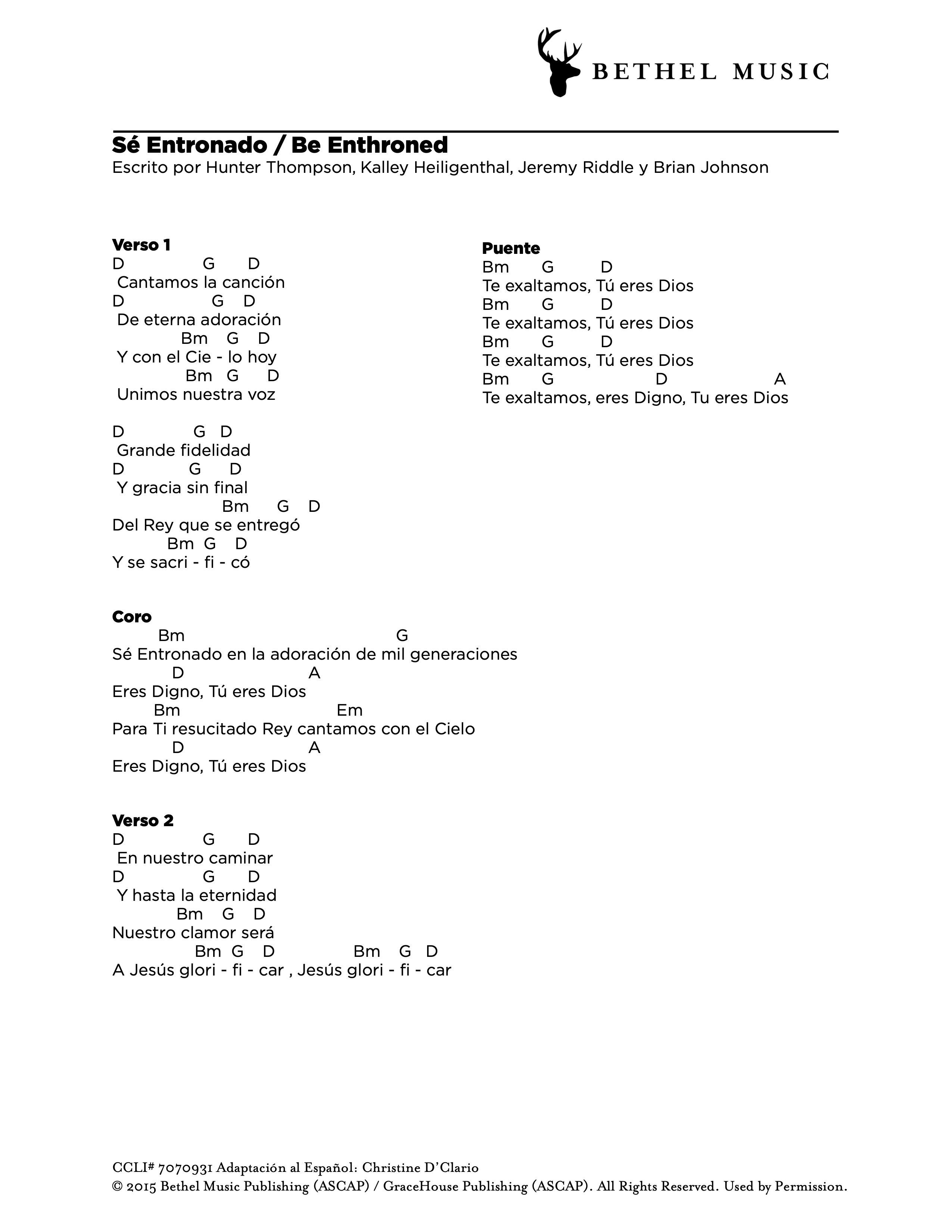 Adaptación al Español: Christine D’Clario © 2018 Bethel Music Publishing (ASCAP) / Aliento Music Group (ASCAP). All Rights Reserved. Used by Permission.
