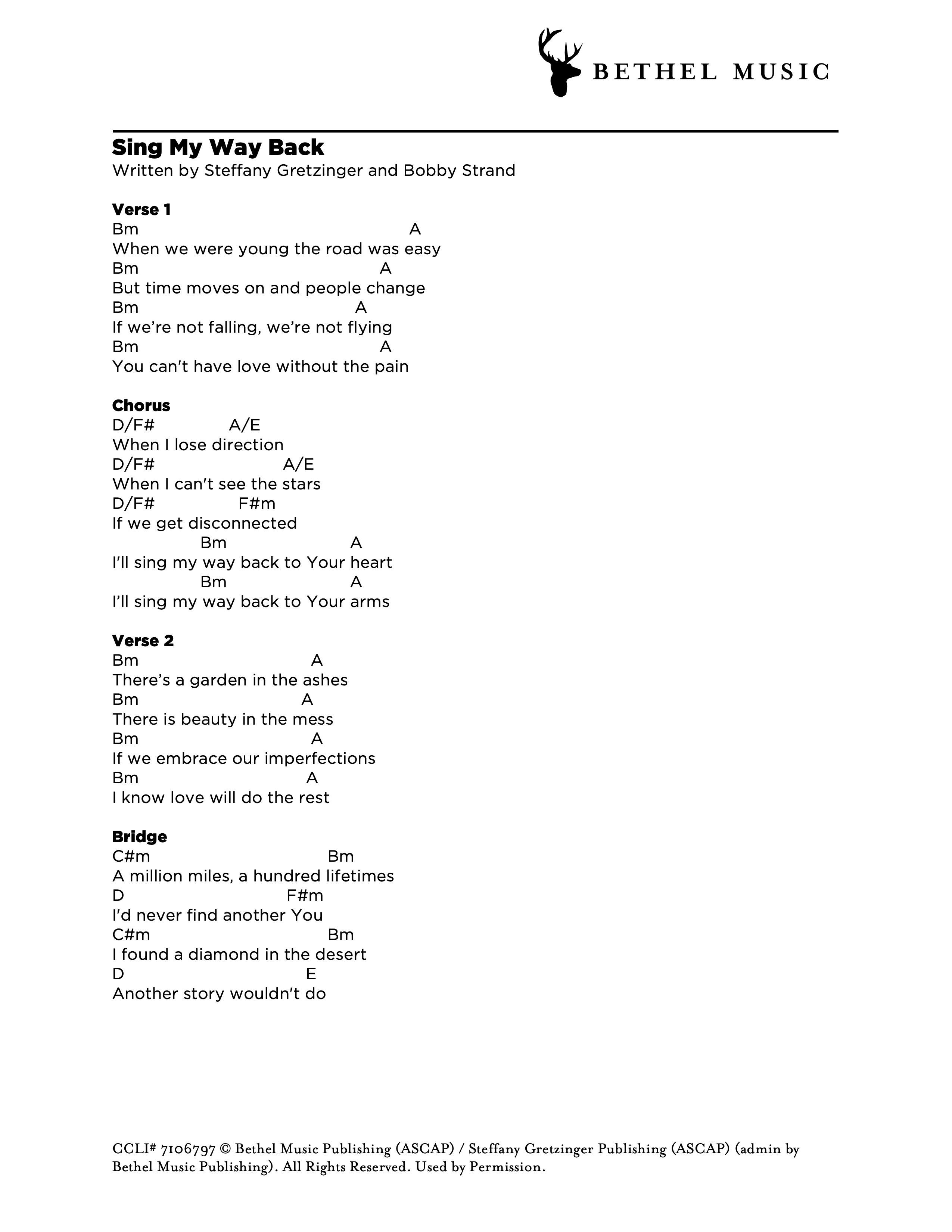 © 2017 Bethel Music Publishing (ASCAP) / Steffany Gretzinger Publishing (ASCAP) (admin by Bethel Music Publishing) / Bobby Strand Publishing (ASCAP) (admin by Bethel Music Publishing). All Rights Reserved. Used by Permission.