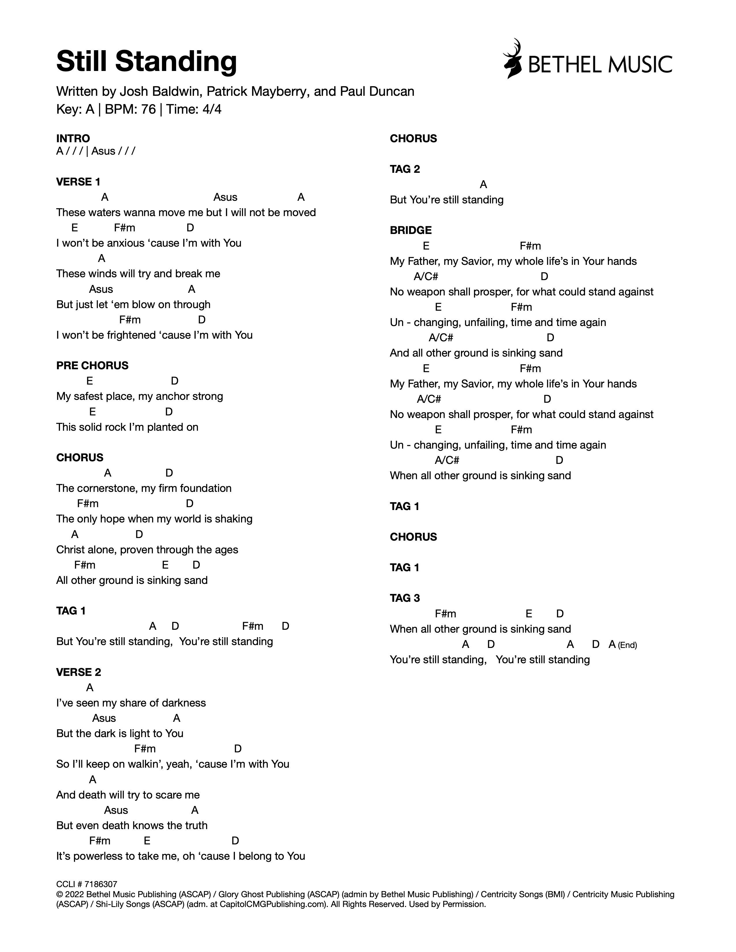 © 2022 Bethel Music Publishing (ASCAP) / Glory Ghost Publishing (ASCAP) (admin by Bethel Music Publishing) / Centricity Songs (BMI) / Centricity Music Publishing (ASCAP) / Shi-Lily Songs (ASCAP) (adm. at CapitolCMGPublishing.com). All Rights Reserved. Used by Permission.