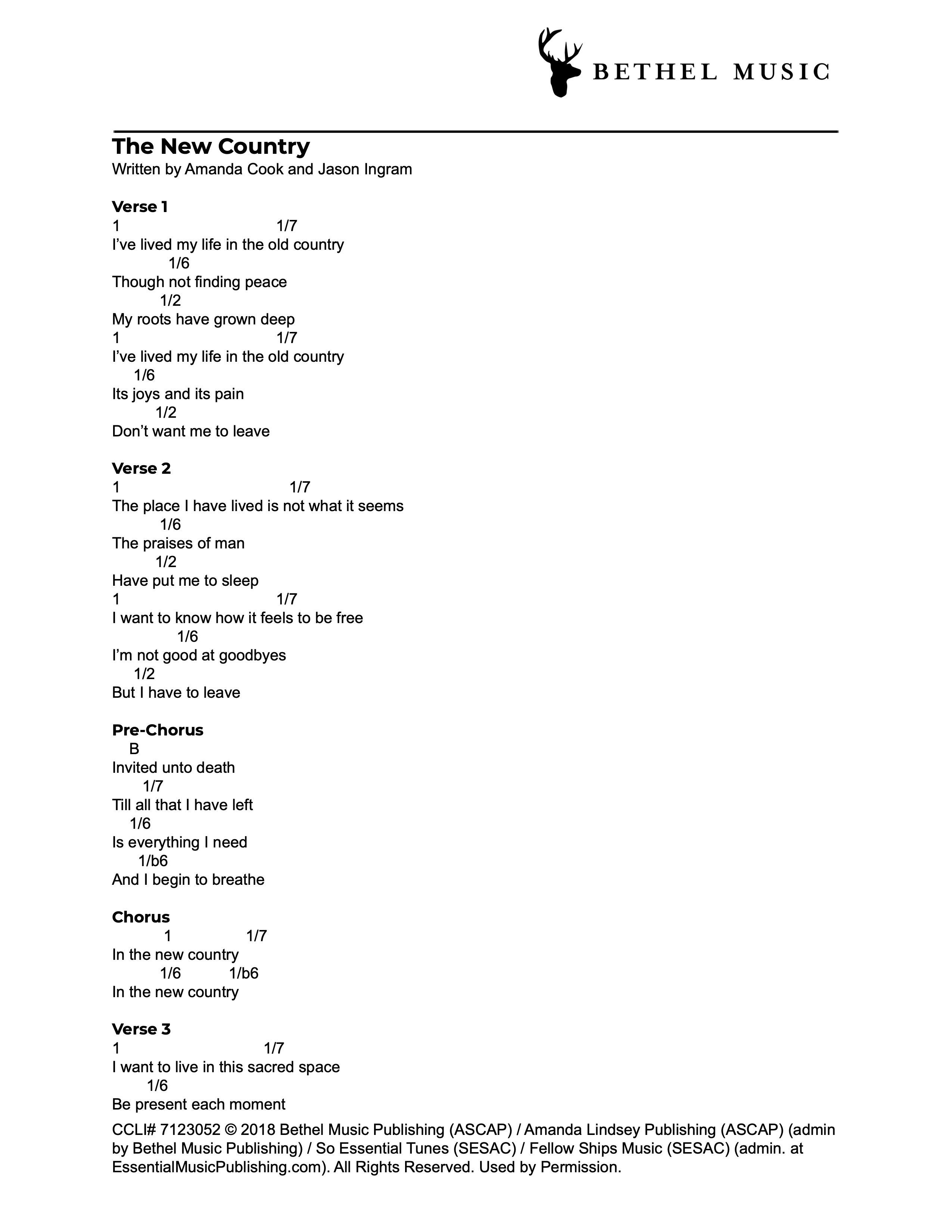 © 2018 Bethel Music Publishing (ASCAP) / Amanda Lindsey Publishing (ASCAP) (admin by Bethel Music Publishing) / So Essential Tunes (SESAC) / Fellow Ships Music (SESAC) (admin. at EssentialMusicPublishing.com). All Rights Reserved. Used by Permission.