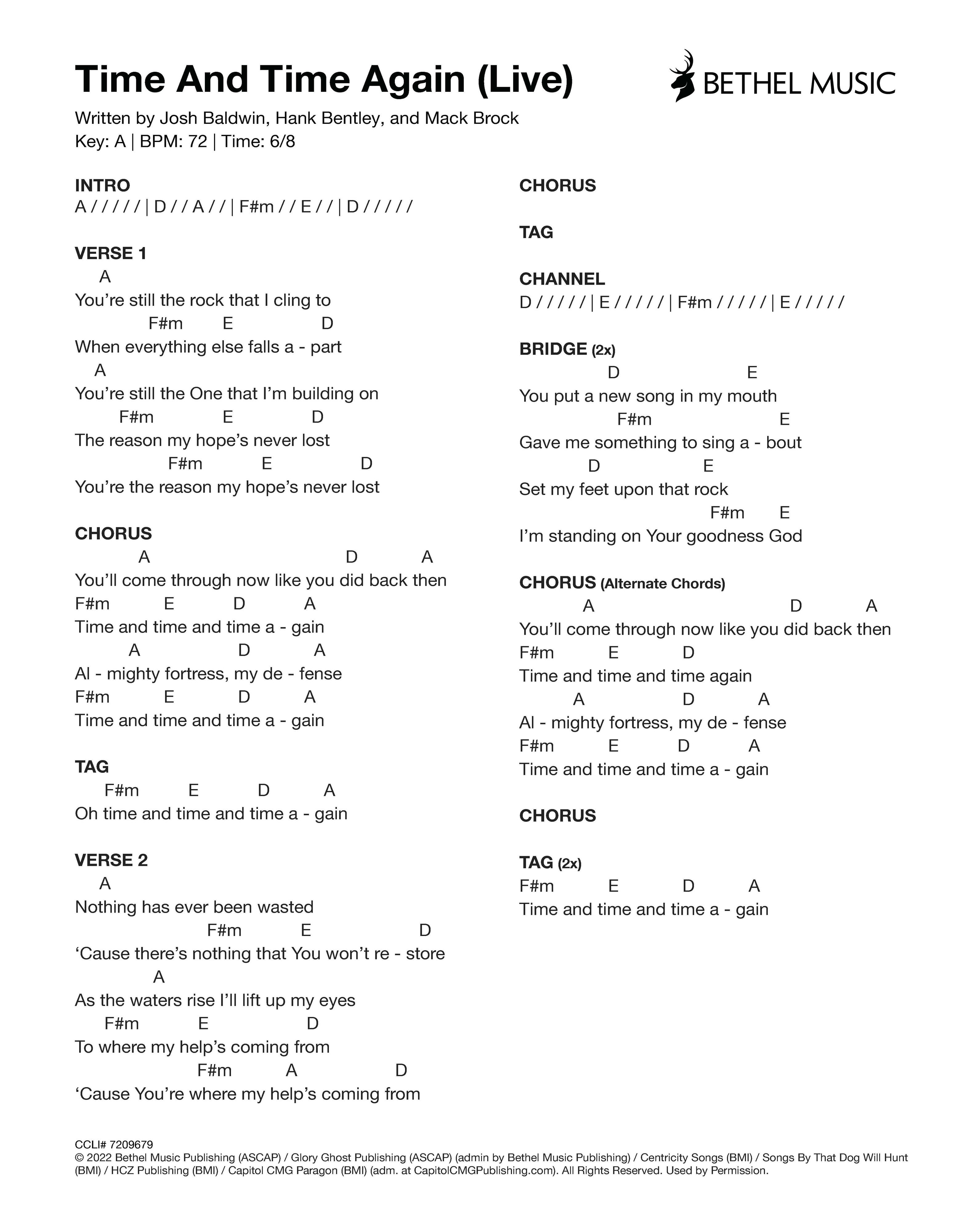 © 2022 Bethel Music Publishing (ASCAP) / Glory Ghost Publishing (admin by Bethel Music Publishing) / Capitol CMG Paragon (BMI) / Songs By That Dog Will Hunt (BMI) (adm at CapitolCMGPublishing.com) / Capitol CMG Paragon (BMI) / Jetfighter Music (BMI) (adm at CapitolCMGPublishing.com). All Rights Reserved. Used by Permission.