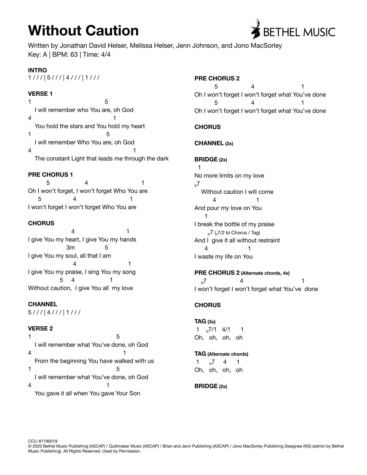 © 2020 Bethel Music Publishing (ASCAP) / Quiltmaker Music (ASCAP) / Brian and Jenn Publishing (ASCAP) / Jono MacSorley Publishing Designee (NS) (admin by Bethel Music Publishing). All Rights Reserved. Used by Permission.