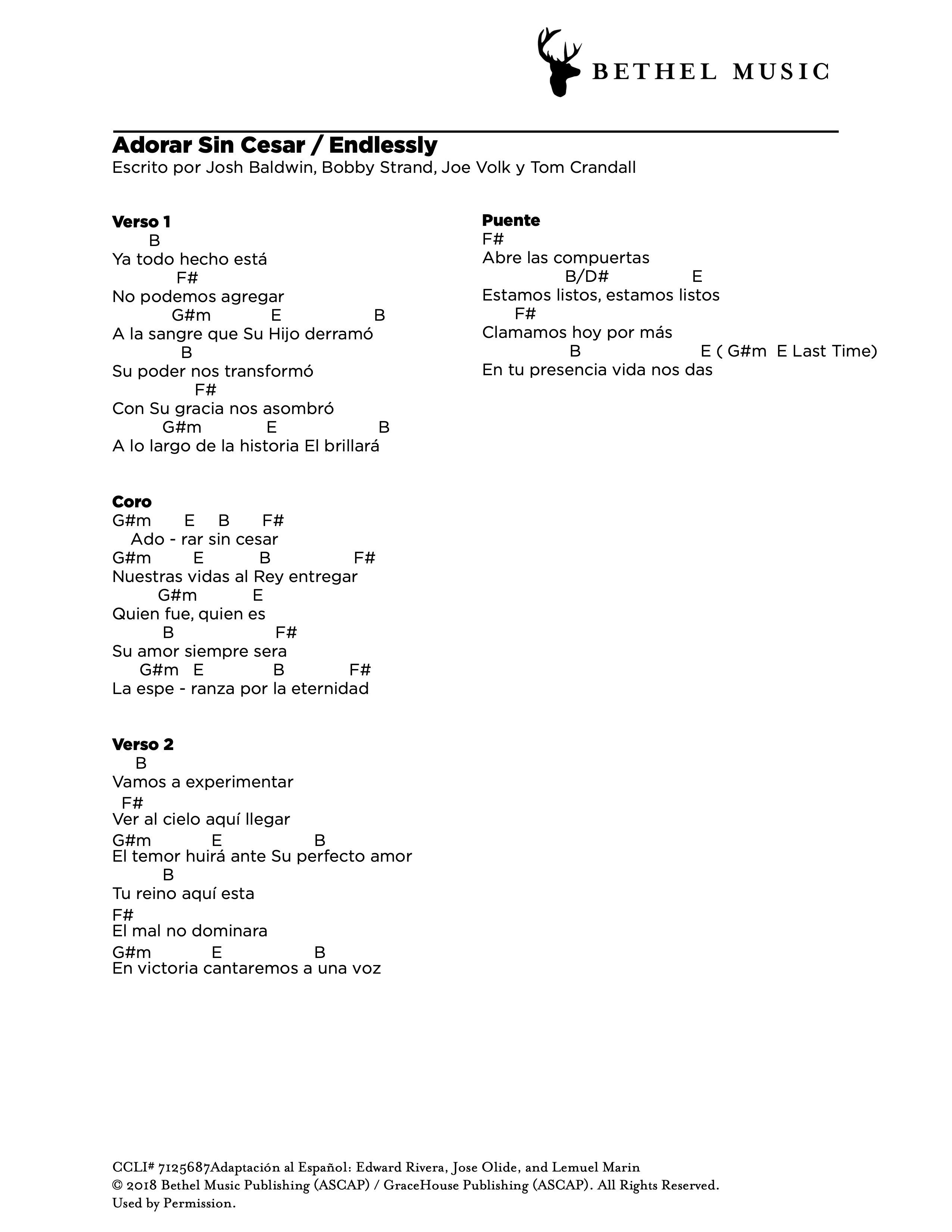 Adaptación al Español: Edward Rivera, Jose Olide, and Lemuel Marin © 2018 Bethel Music Publishing (ASCAP) / Aliento Music Group (ASCAP). All Rights Reserved. Used by Permission.
