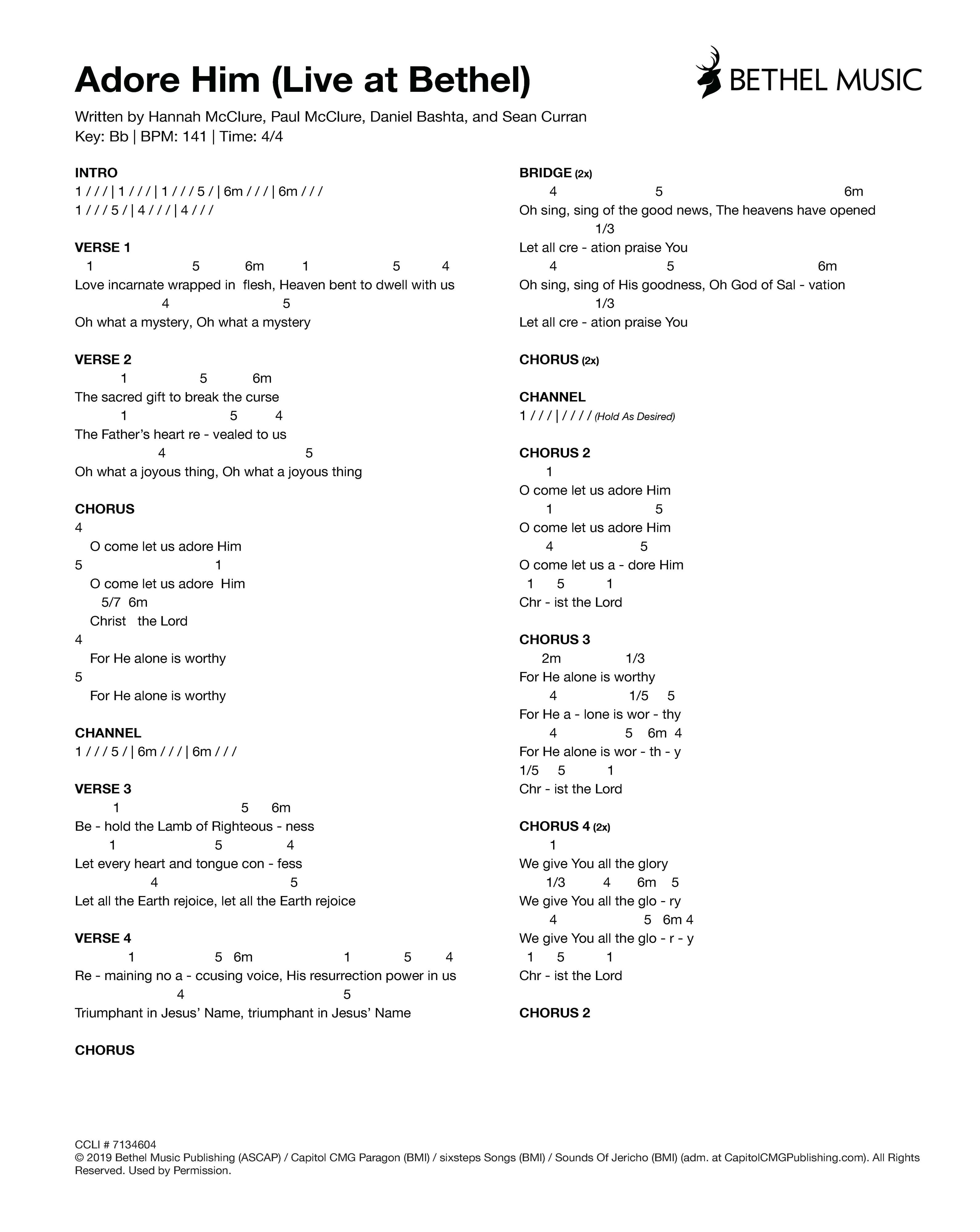 © 2019 Bethel Music Publishing (ASCAP) / Capitol CMG Paragon (BMI) / sixsteps Songs (BMI) / Sounds Of Jericho (BMI) (adm. at CapitolCMGPublishing.com). All Rights Reserved. Used by Permission.