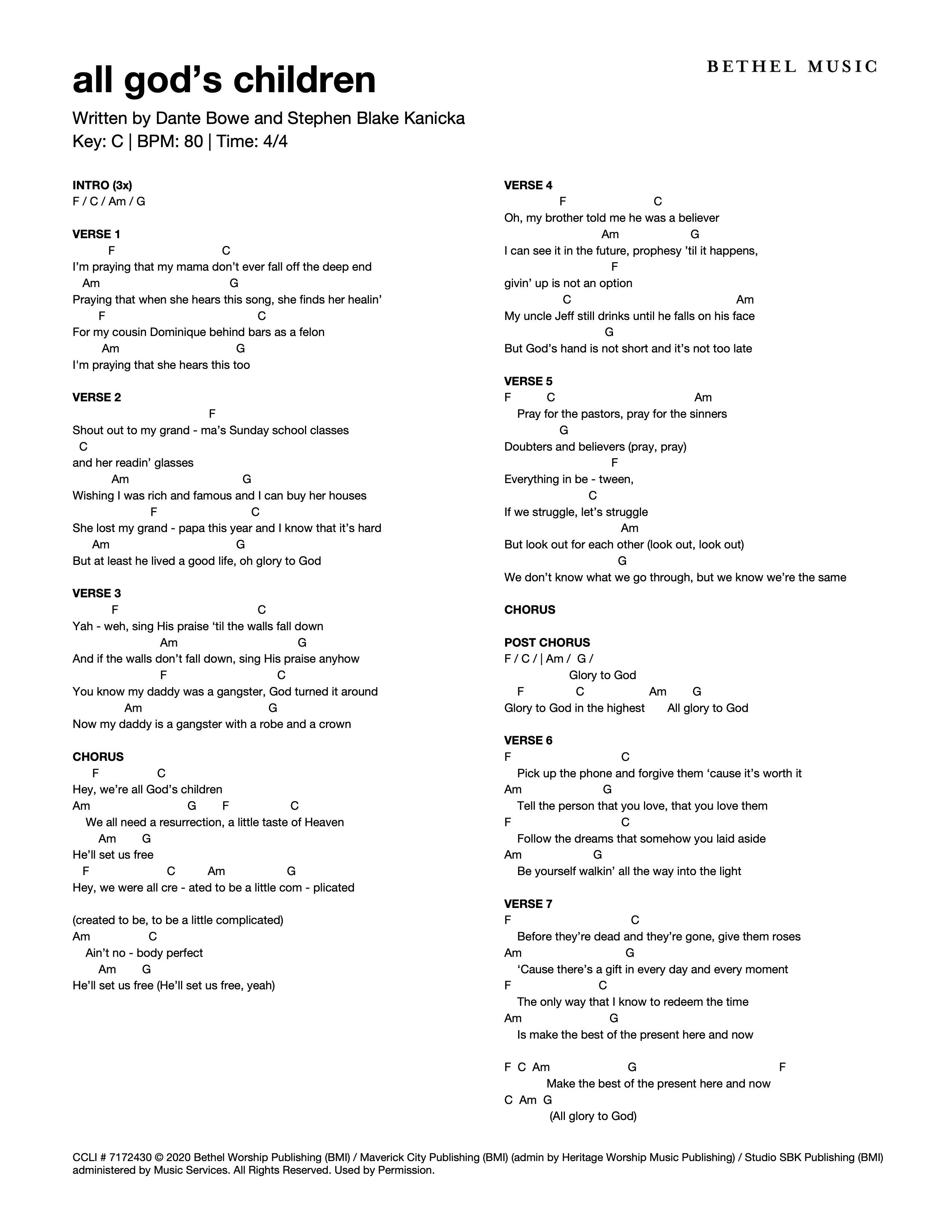© 2020 Bethel Worship Publishing (BMI) / Maverick City Publishing (BMI) (admin by Heritage Worship Music Publishing) / Studio SBK Publishing (BMI) administered by Music Services. All Rights Reserved. Used by Permission.