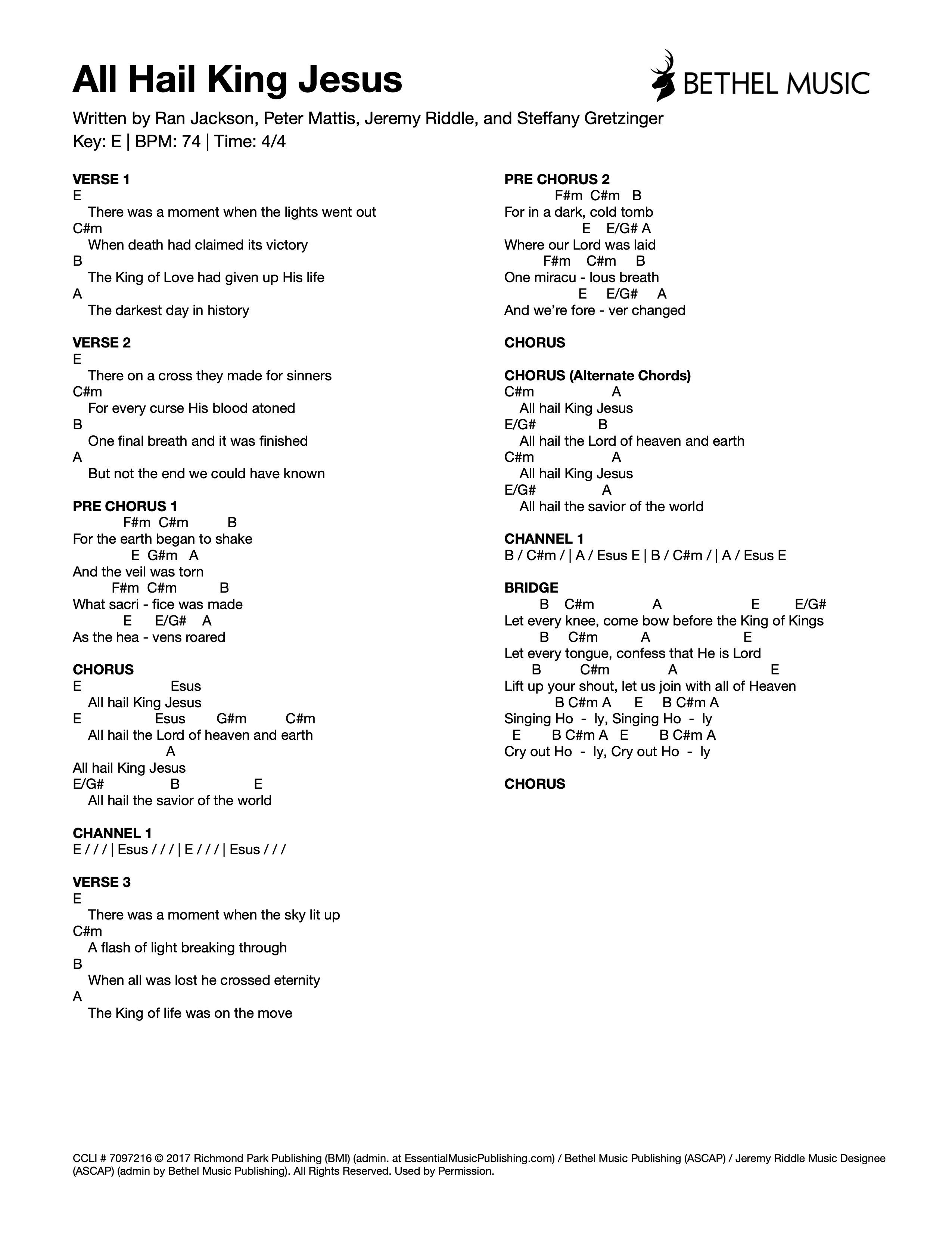 © 2017 Richmond Park Publishing (BMI) (admin. at EssentialMusicPublishing.com) / Bethel Music Publishing (ASCAP) / Jeremy Riddle Music Designee (ASCAP) (admin by Bethel Music Publishing). All Rights Reserved. Used by Permission.