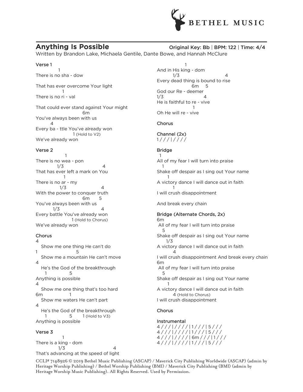 © 2019 Bethel Music Publishing (ASCAP) / Maverick City Publishing Worldwide (ASCAP) (admin by Heritage Worship Publishing) / Brandon Lake Music (ASCAP) (admin by Bethel Music Publishing) / Bethel Worship Publishing (BMI) / Maverick City Publishing (BMI) (admin by Heritage Worship Music Publishing). All Rights Reserved. Used by Permission.
