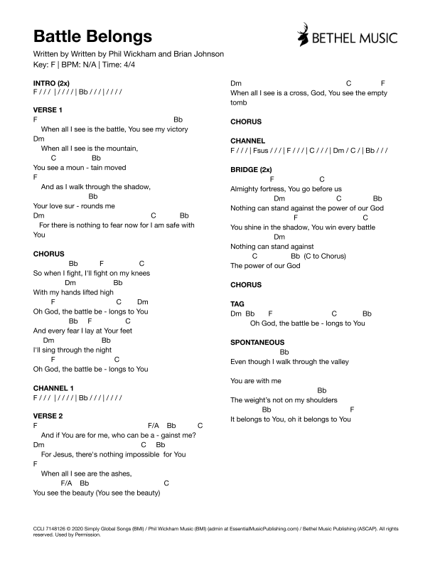 © 2020 Phil Wickham Music (BMI) / Simply Global Songs (BMI) / Sing My Songs (BMI) (admin. at EssentialMusicPublishing.com) / Bethel Music Publishing (ASCAP). All Rights Reserved. Used by Permission.