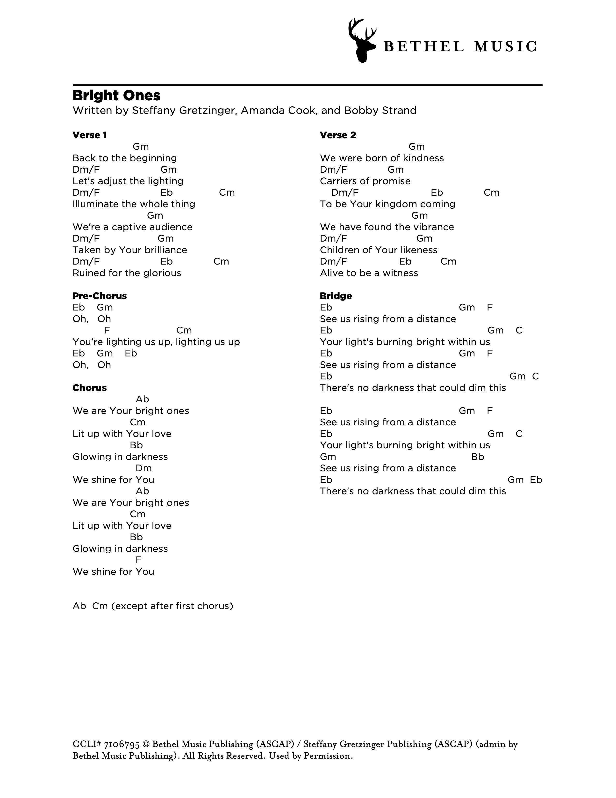 © 2017 Bethel Music Publishing (ASCAP) / Steffany Gretzinger Publishing (ASCAP) (admin by Bethel Music Publishing) / Bobby Strand Publishing (ASCAP) (admin by Bethel Music Publishing). All Rights Reserved. Used by Permission.