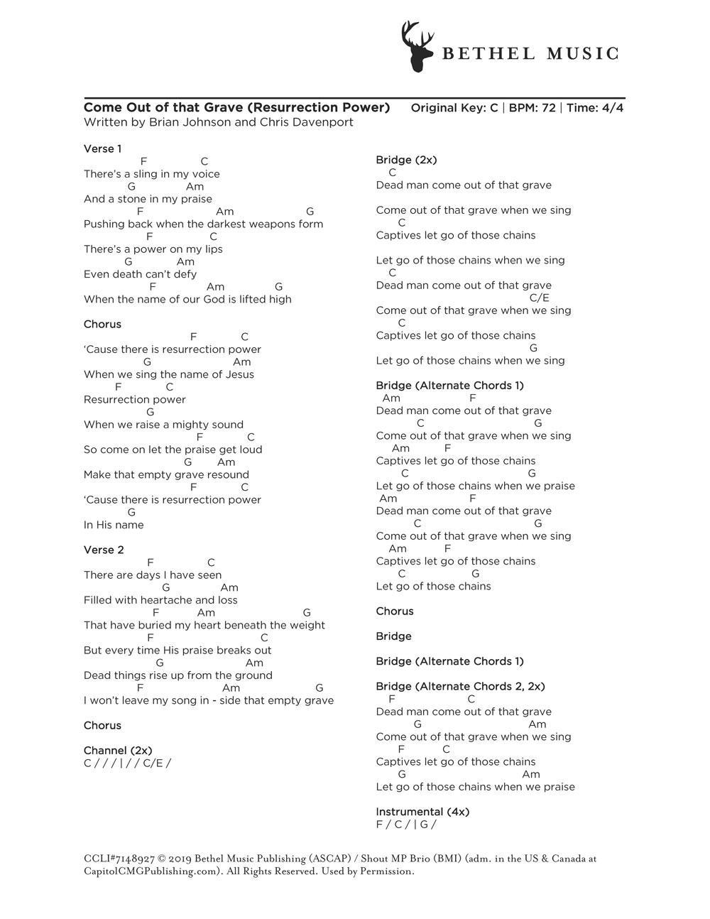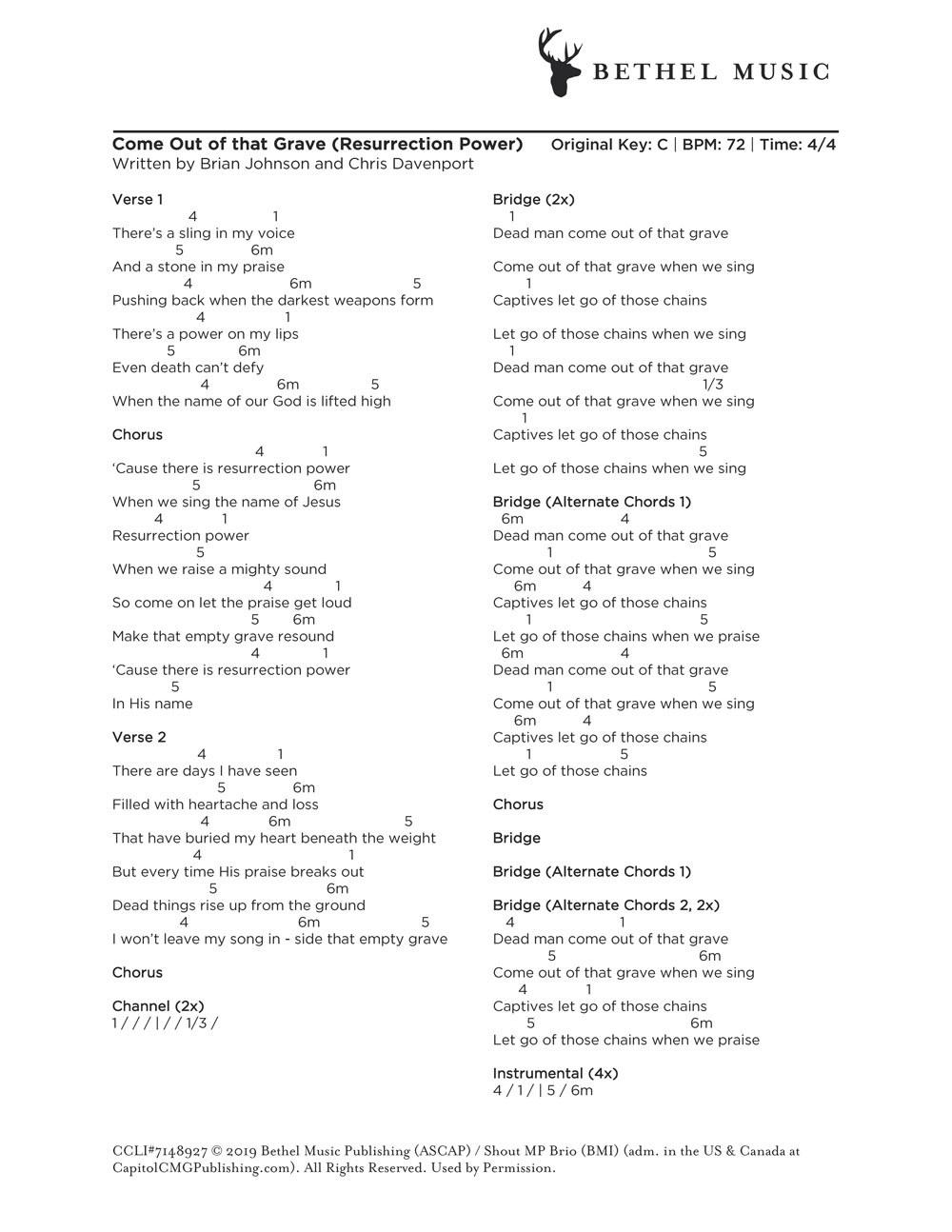 © 2019 Bethel Music Publishing (ASCAP) / Shout MP Brio (BMI) (adm. in the US & Canada at CapitolCMGPublishing.com). All Rights Reserved. Used by Permission.