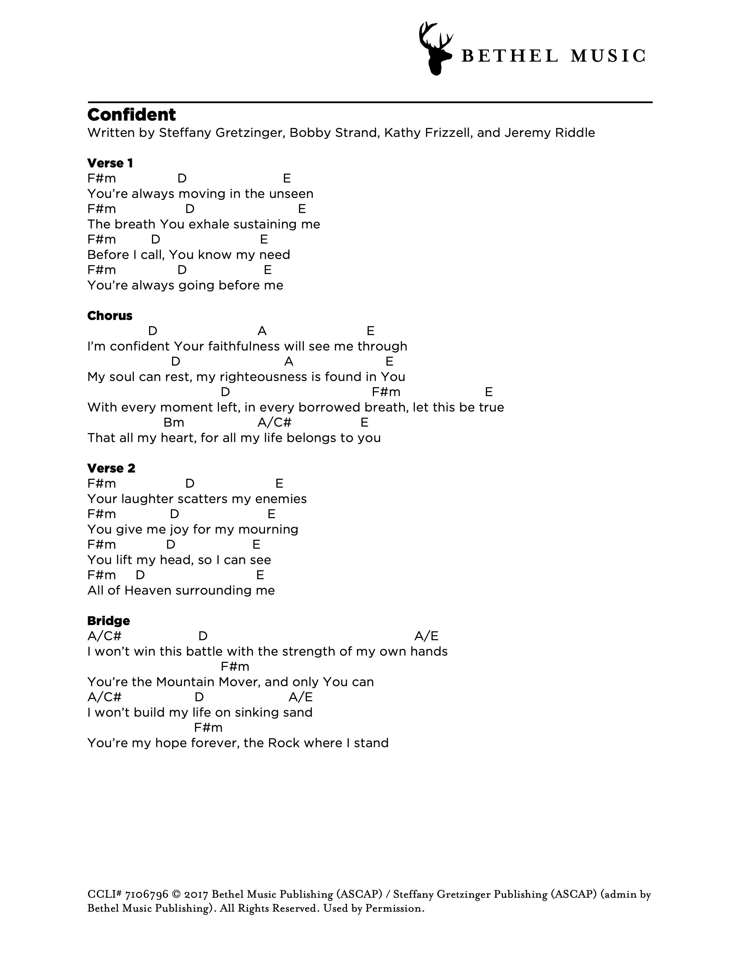 © 2017 Bethel Music Publishing (ASCAP) / Steffany Gretzinger Publishing (ASCAP) (admin by Bethel Music Publishing). All Rights Reserved. Used by Permission.