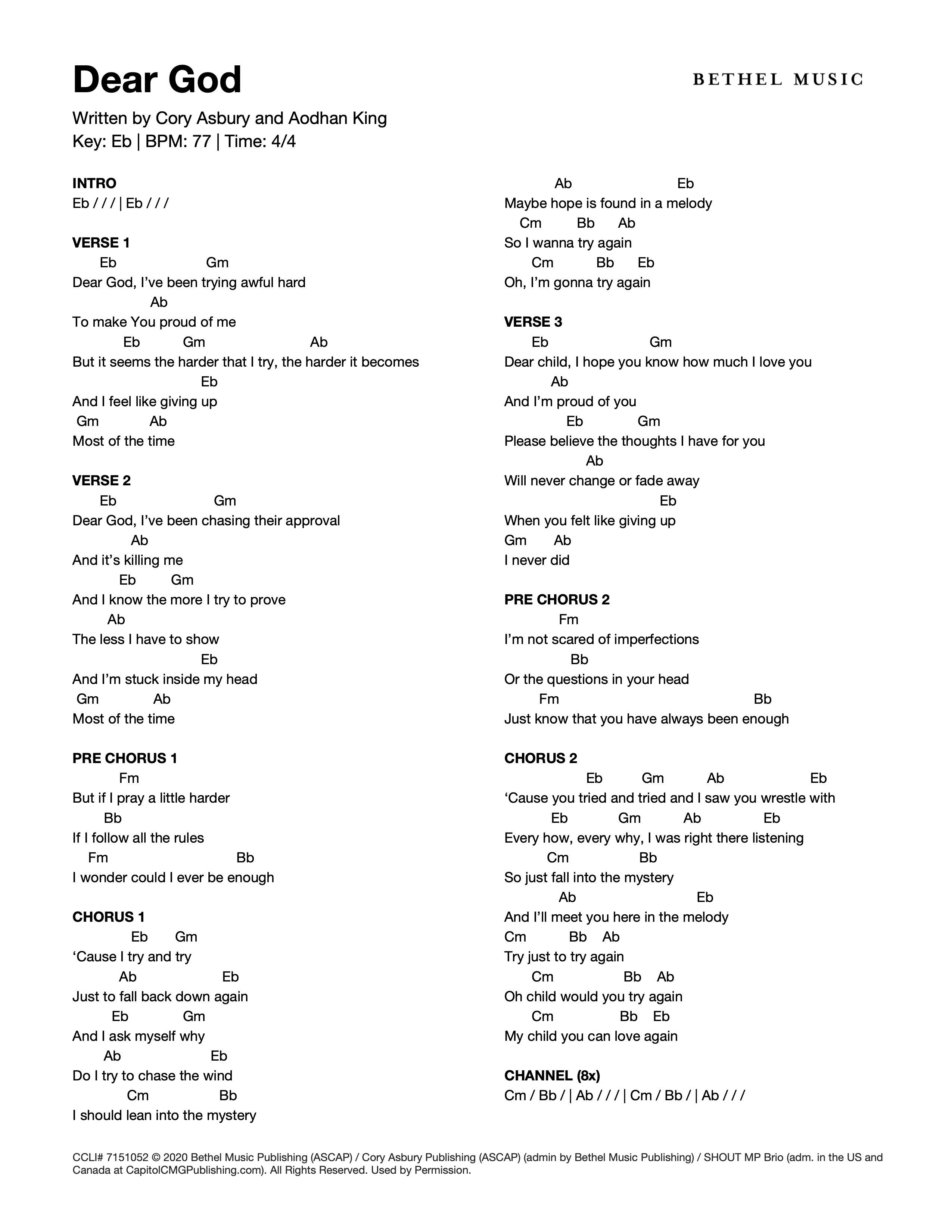 © 2020 Bethel Music Publishing (ASCAP) / Cory Asbury Publishing (ASCAP) (admin by Bethel Music Publishing) / SHOUT MP Brio (adm. in the US and Canada at CapitolCMGPublishing.com). All Rights Reserved. Used by Permission.