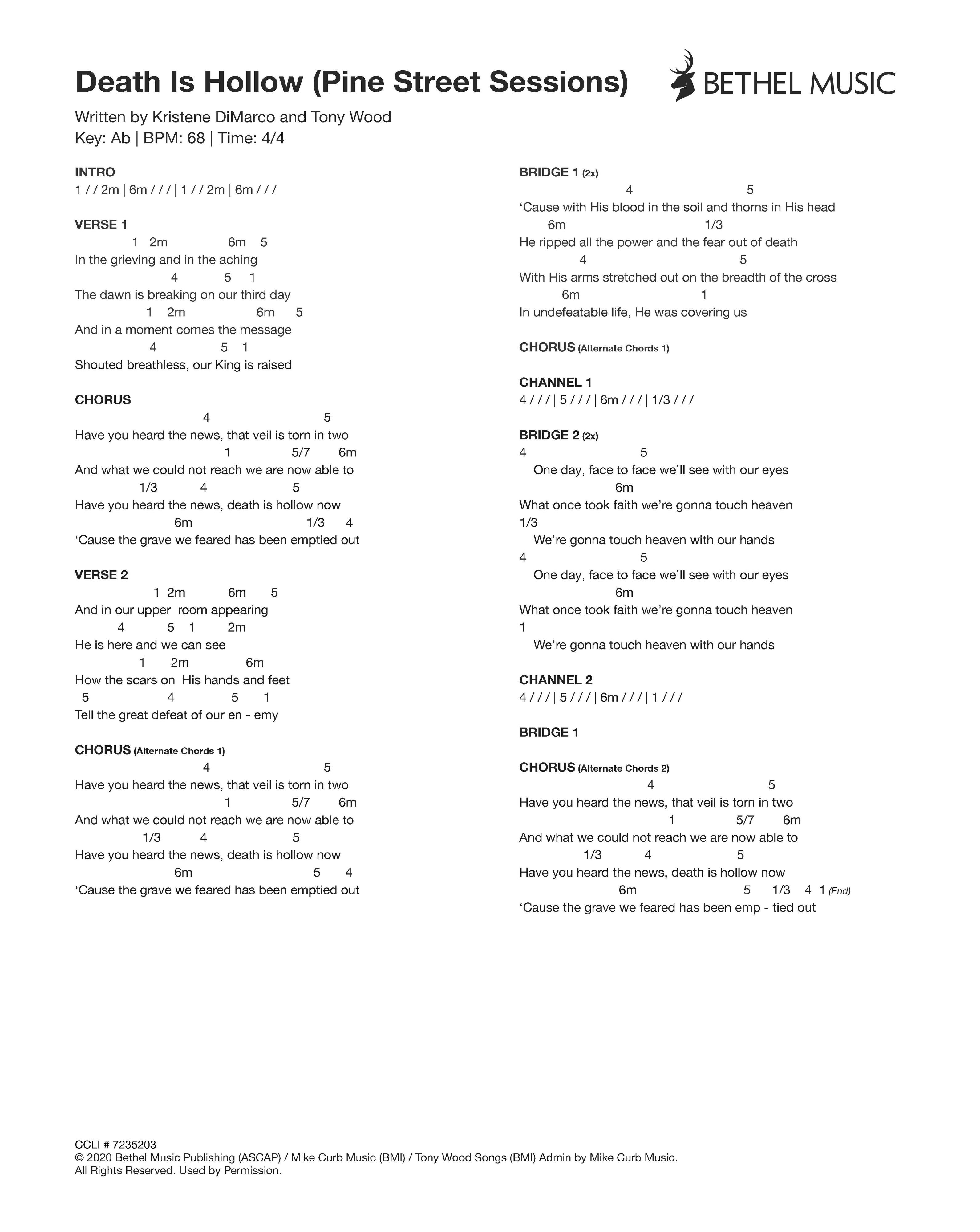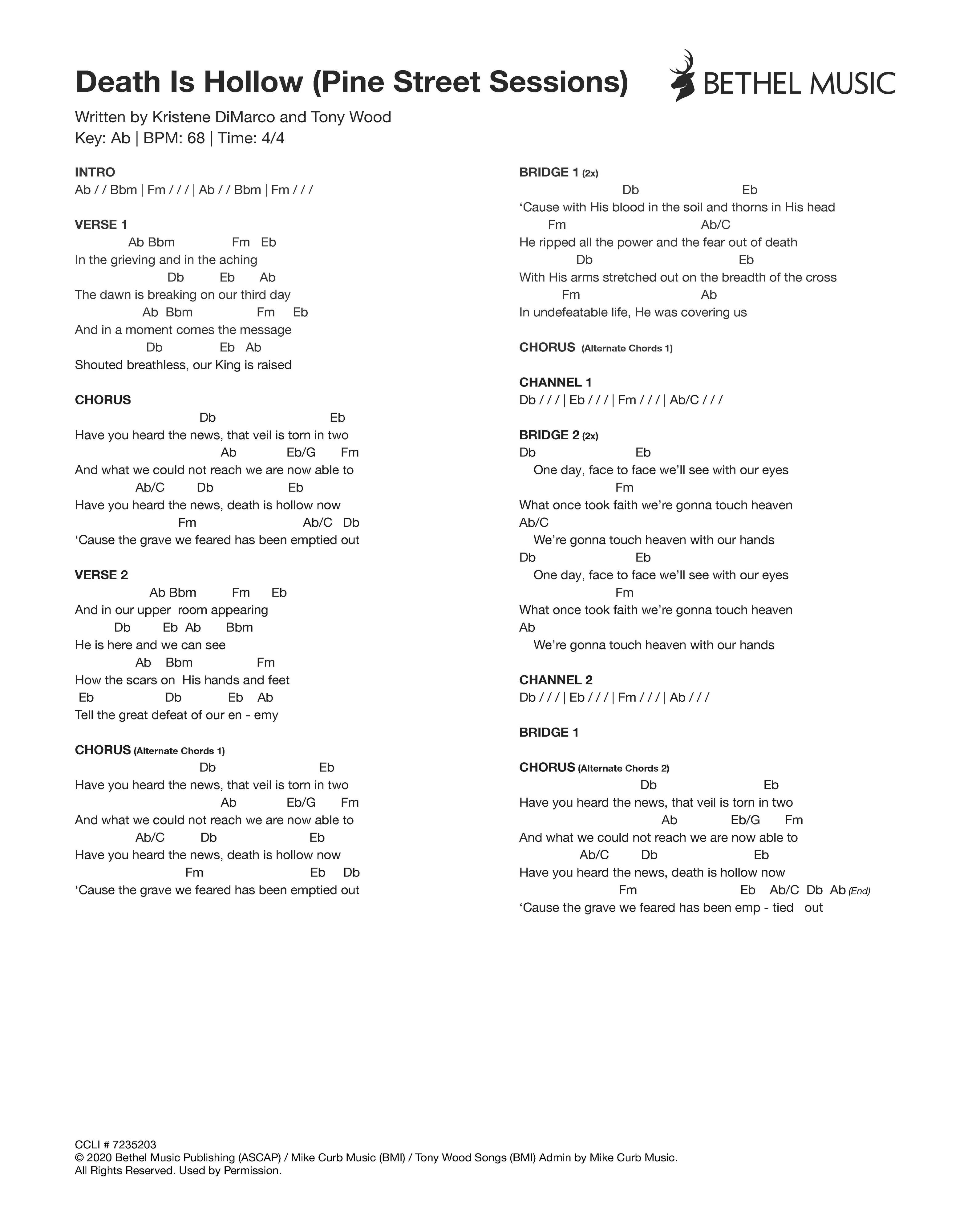 © 2020 Bethel Music Publishing (ASCAP) / Mike Curb Music (BMI) / Tony Wood Songs (BMI) Admin by Mike Curb Music. All Rights Reserved. Used by Permission.