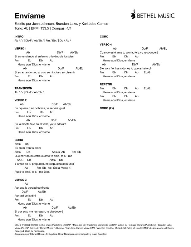 © 2020 Bethel Music Publishing (ASCAP) / Brian and Jenn Publishing (ASCAP) / Maverick City Publishing Worldwide (ASCAP) (admin by Heritage Worship Publishing) / Brandon Lake Music (ASCAP) (admin by Bethel Music Publishing) / Kari Jobe Carnes Music (BMI) / Worship Together Music (BMI) (adm. at CapitolCMGPublishing.com). All Rights Reserved. Used by Permission.