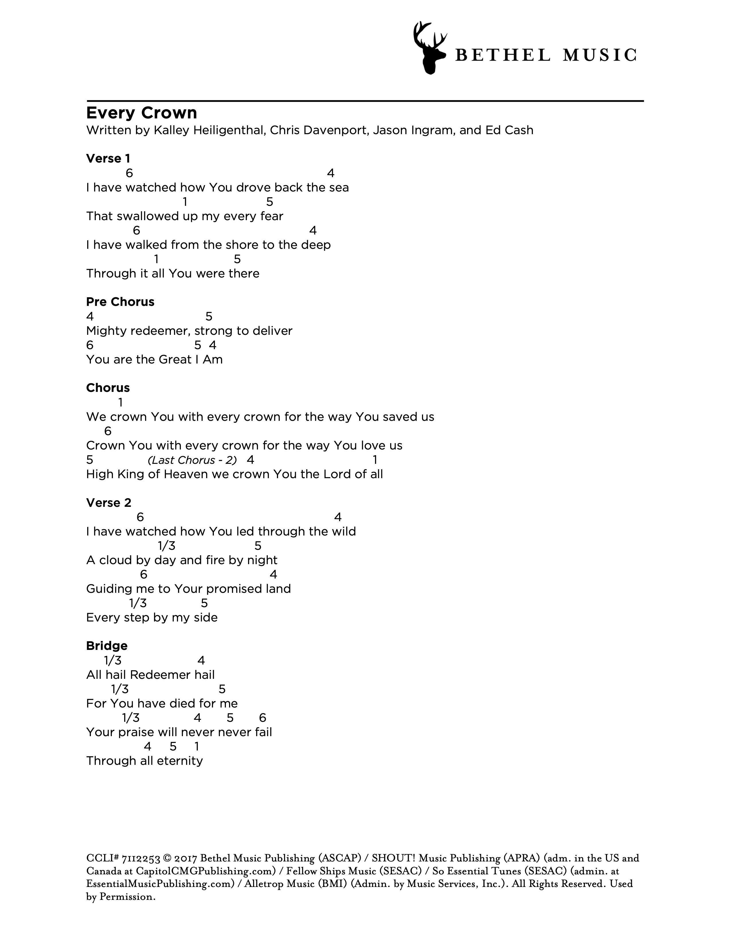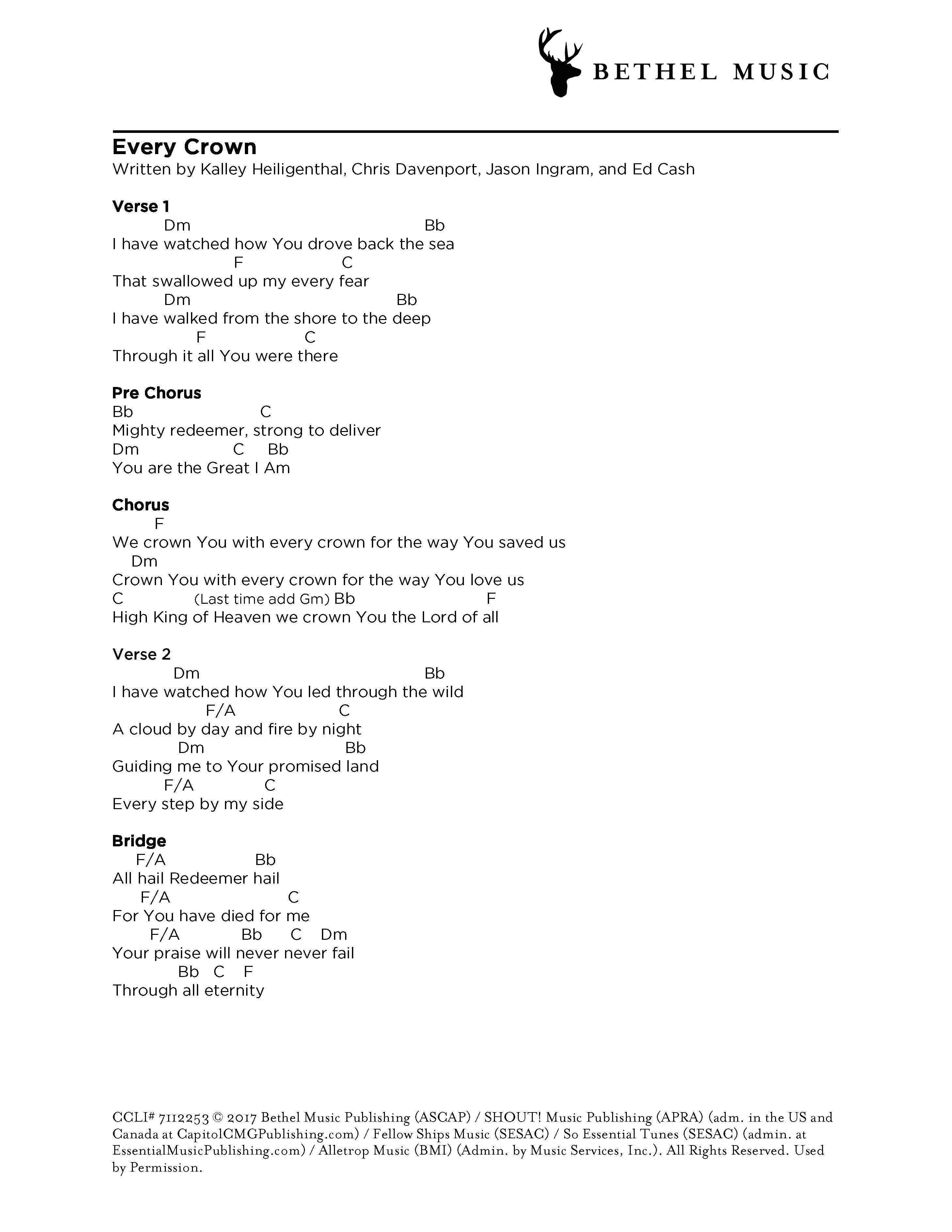 © 2017 Bethel Music Publishing (ASCAP) / Alletrop Music (BMI) (Admin. by Music Services, Inc.) / Fellow Ships Music (SESAC) / So Essential Tunes (SESAC) (admin. at EssentialMusicPublishing.com) / SHOUT! Music Publishing (APRA) (adm. in the US and Canada at CapitolCMGPublishing.com). All Rights Reserved. Used by Permission.