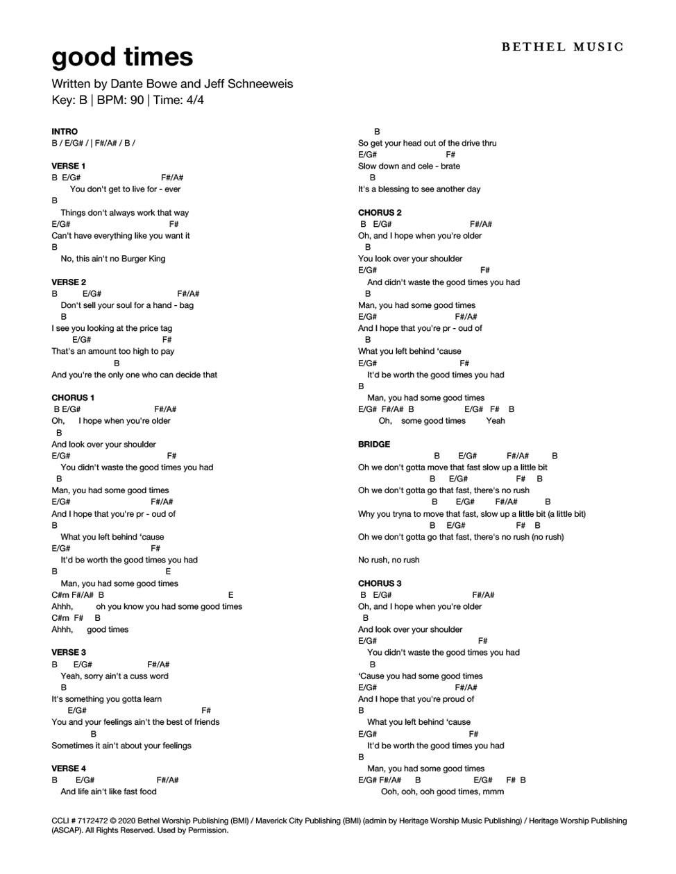 © 2020 Bethel Worship Publishing (BMI) / Maverick City Publishing (BMI) (admin by Heritage Worship Music Publishing) / Heritage Worship Publishing (ASCAP). All Rights Reserved. Used by Permission.