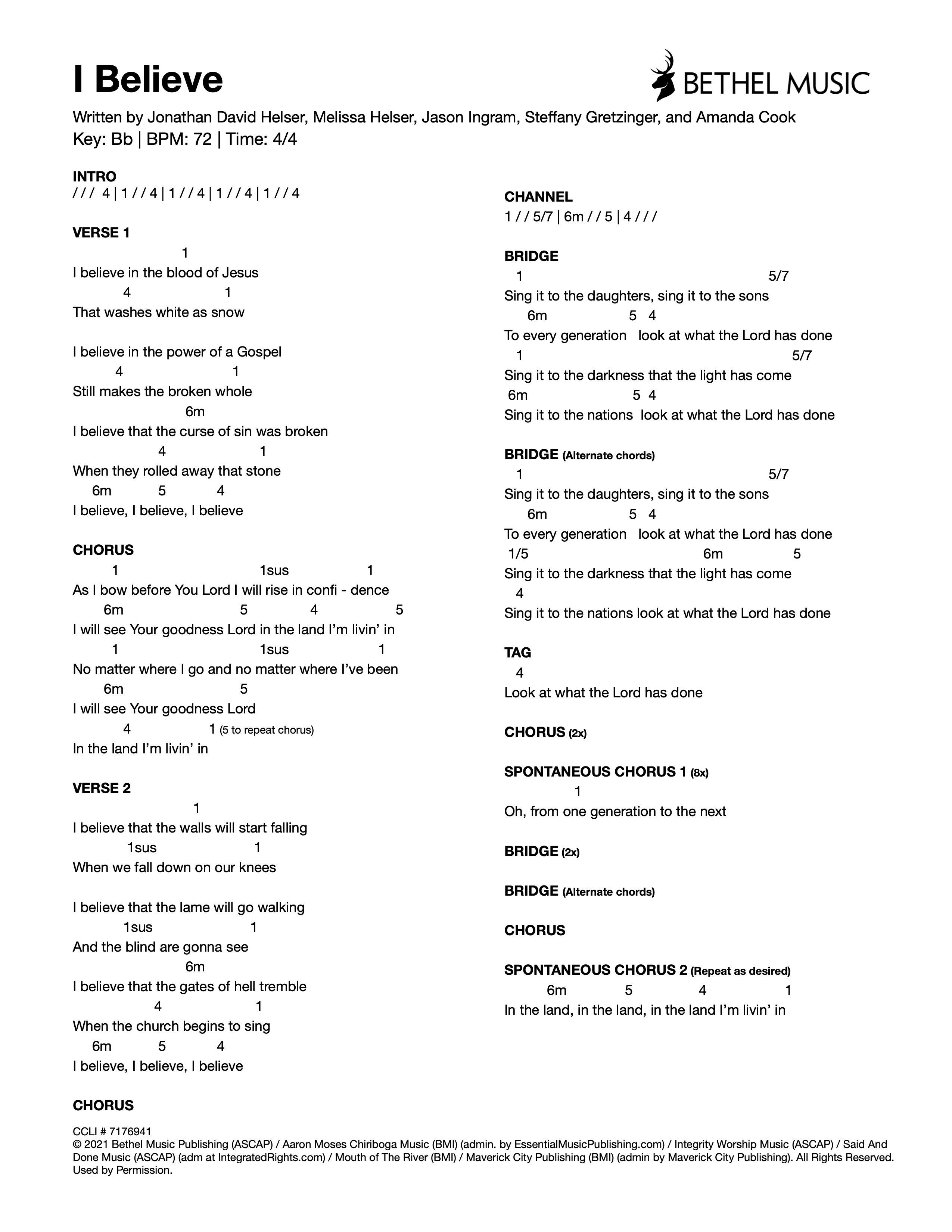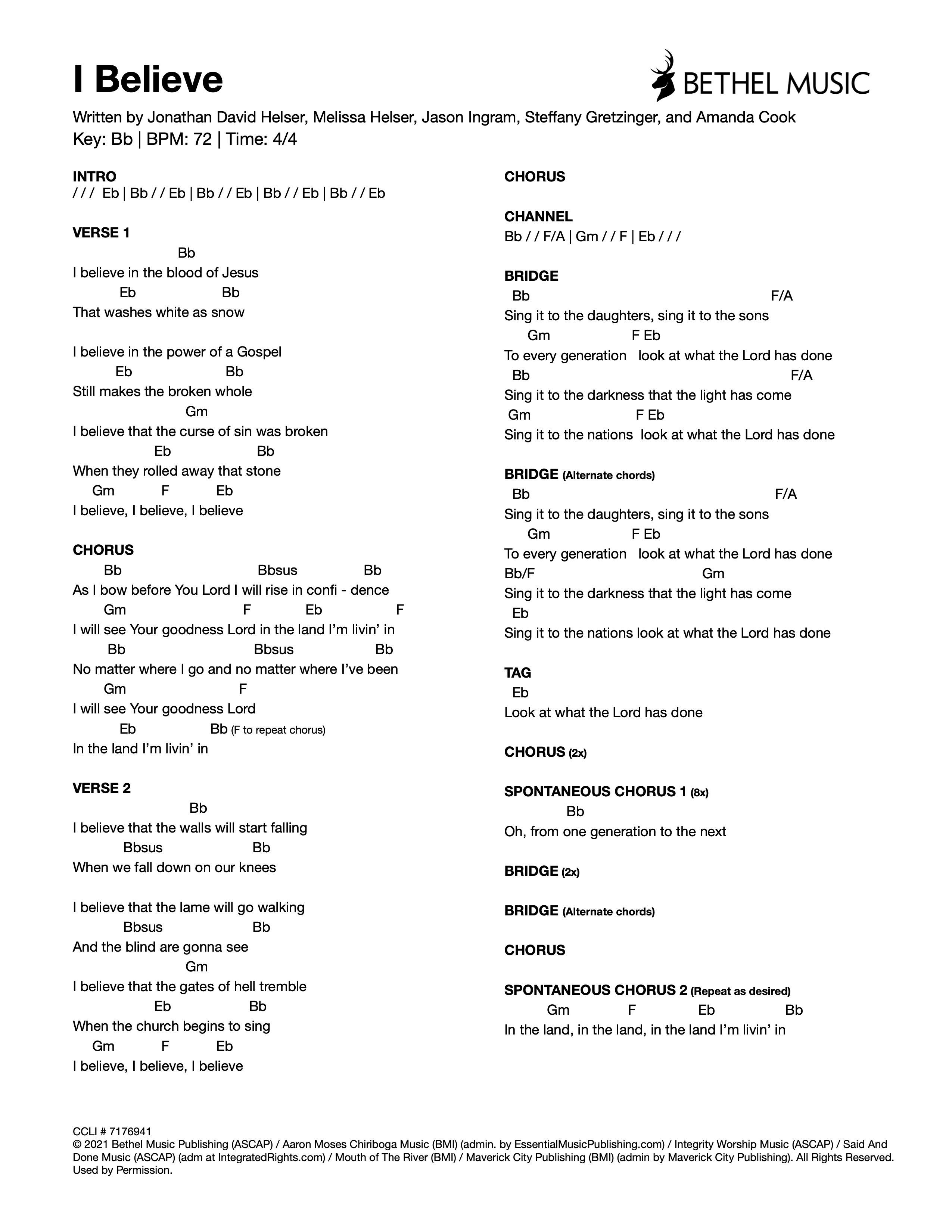 © 2021 Bethel Music Publishing (ASCAP) / Quiltmaker Music (ASCAP) (admin by Bethel Music Publishing) / Be Essential Songs (BMI) / My Magnolia Music (BMI) / We Are TIM Music (ASCAP) / Wonder Meadow Music (ASCAP) (adm. at CapitolCMGPublishing.com) / All Essential Music (ASCAP) / Maison Publishing (ASCAP) (admin. by EssentialMusicPublishing.com). All Rights Reserved. Used by Permission.