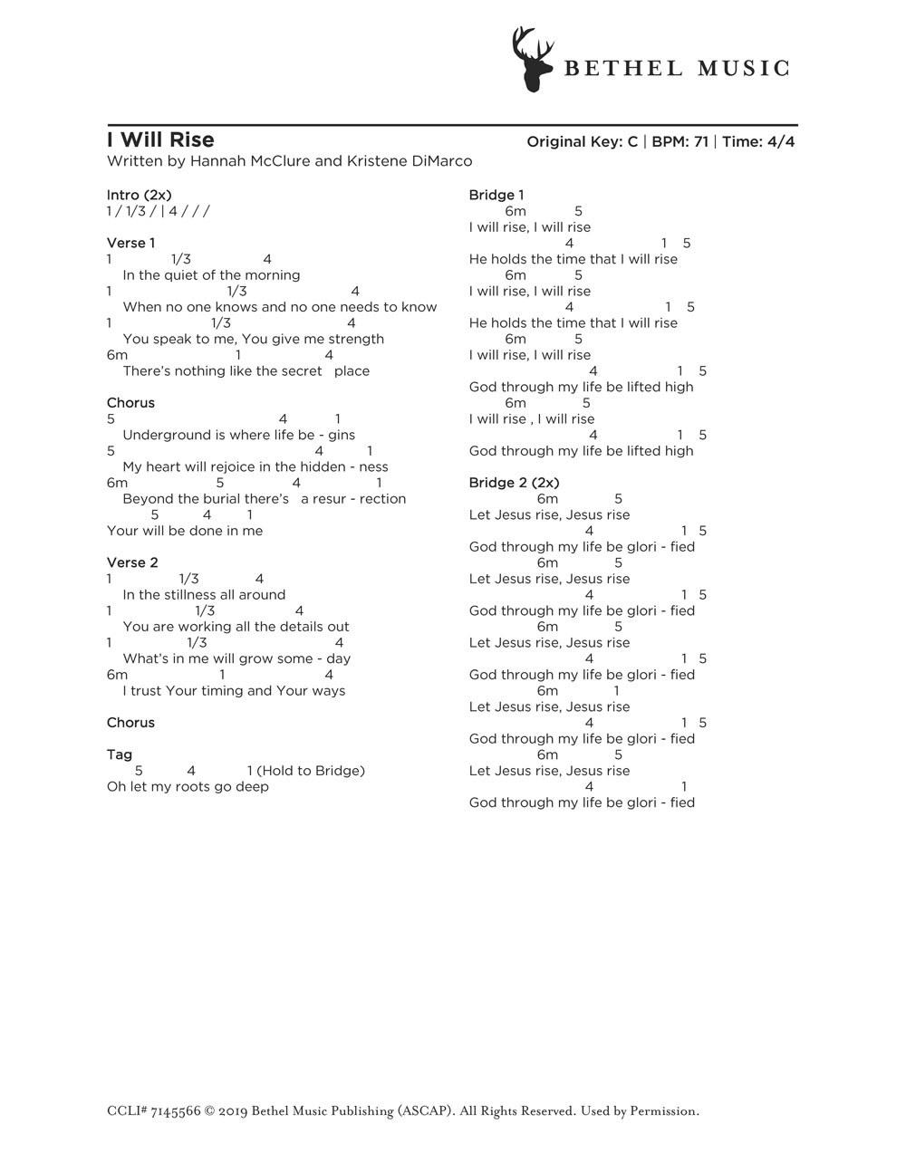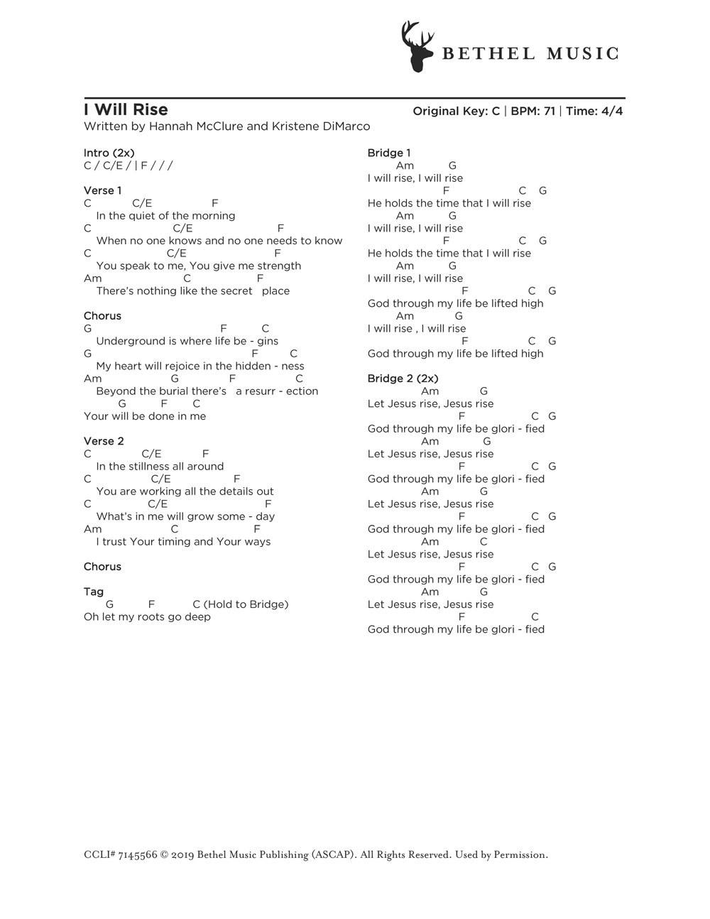 © 2019 Bethel Music Publishing (ASCAP). All Rights Reserved. Used by Permission.