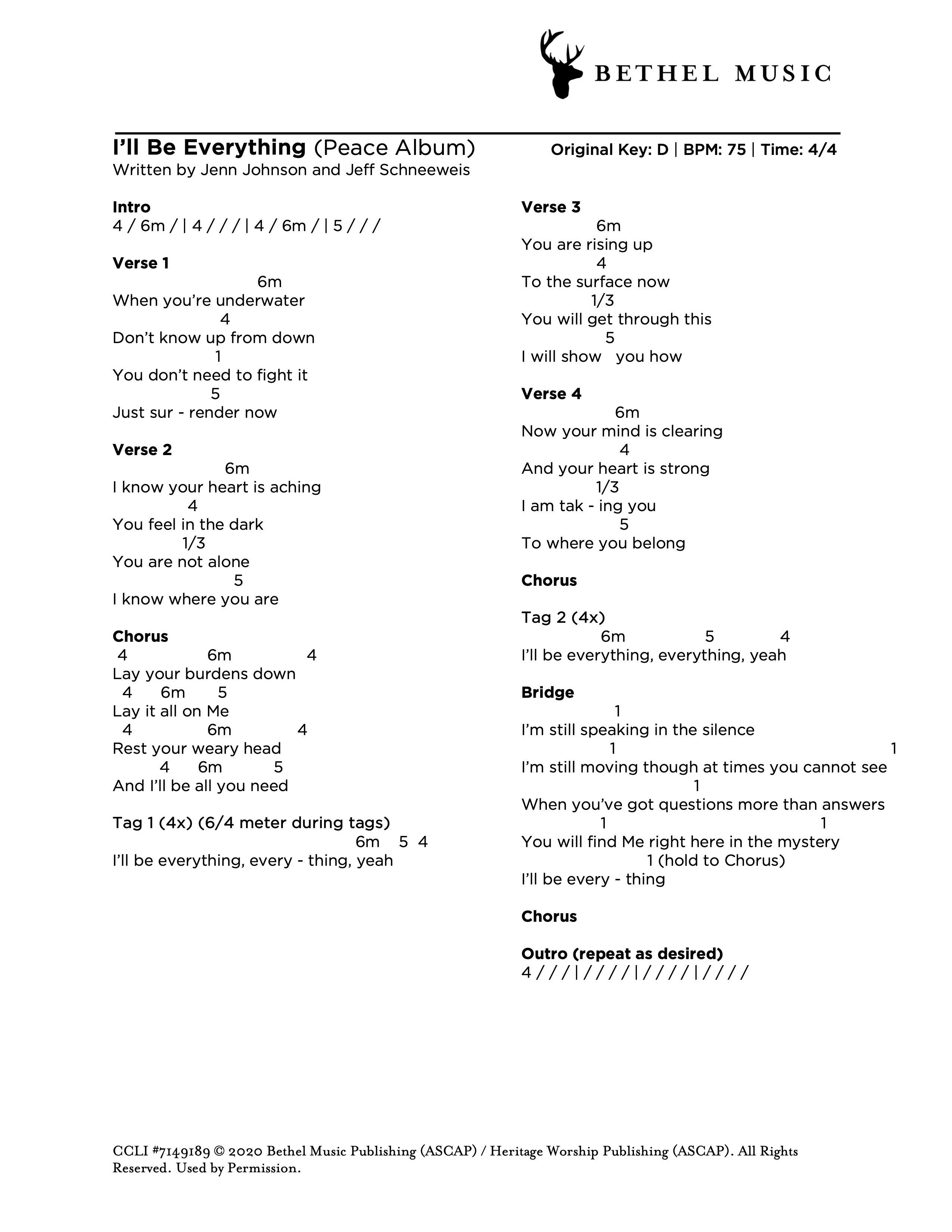 © 2020 Bethel Music Publishing (ASCAP) / Heritage Worship Publishing (ASCAP). All Rights Reserved. Used by Permission.