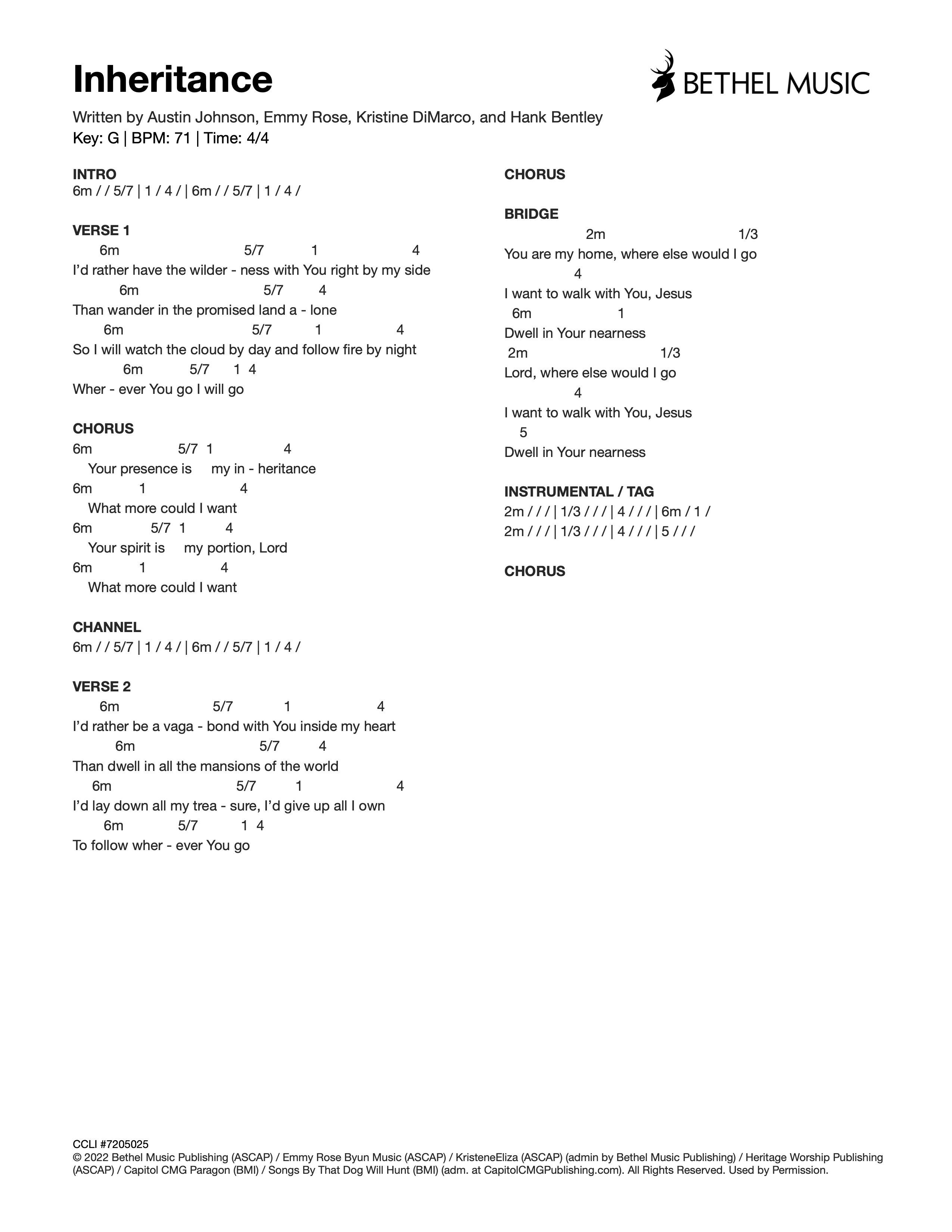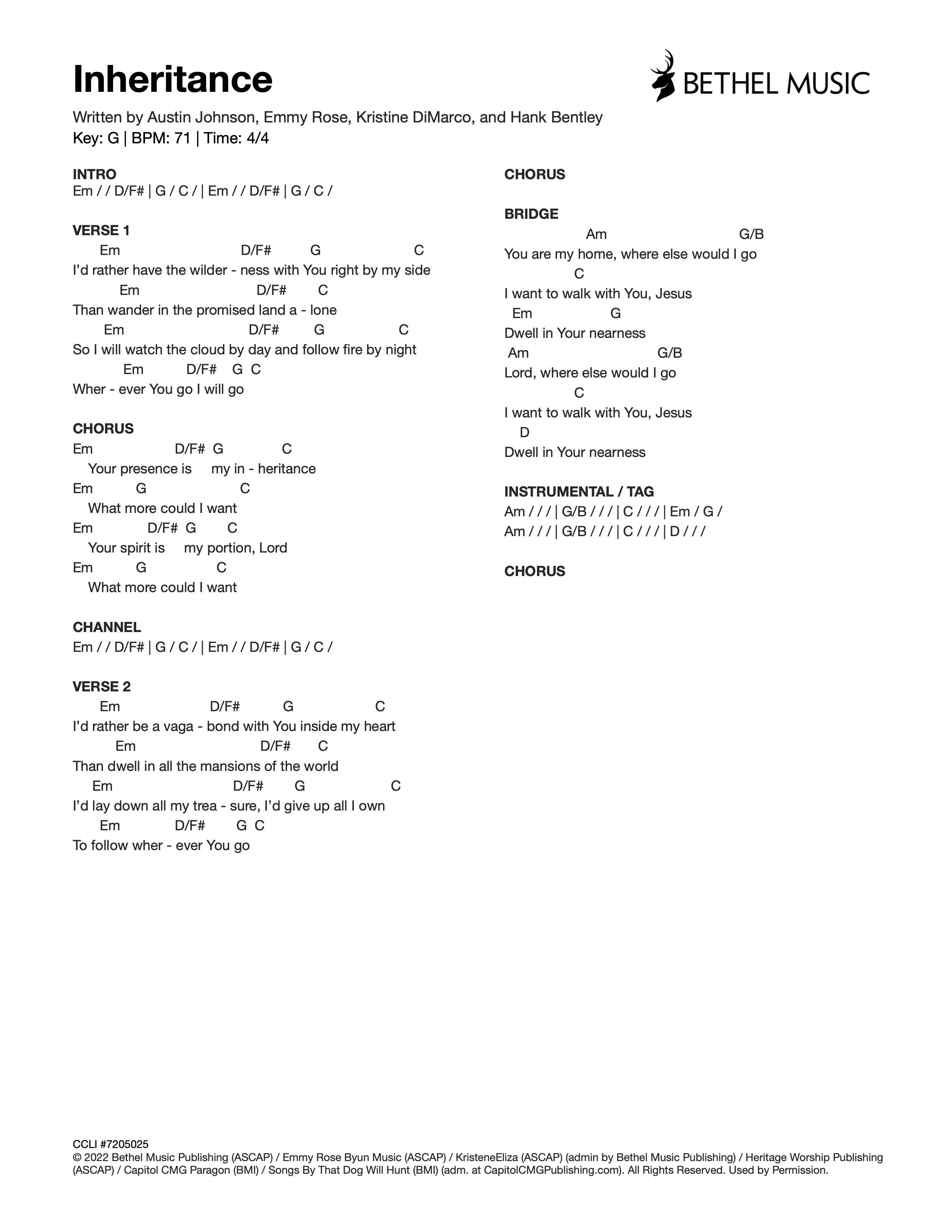 © 2022 Bethel Music Publishing (ASCAP) / Emmy Rose Byun Music (ASCAP) (admin by Bethel Music Publishing) / KristeneEliza (ASCAP) (admin by Bethel Music Publishing) / Heritage Worship Publishing (ASCAP) / © Capitol CMG Paragon (BMI), Songs By That Dog Will Hunt (BMI) (adm. at CapitolCMGPublishing.com). All Rights Reserved. Used by Permission.