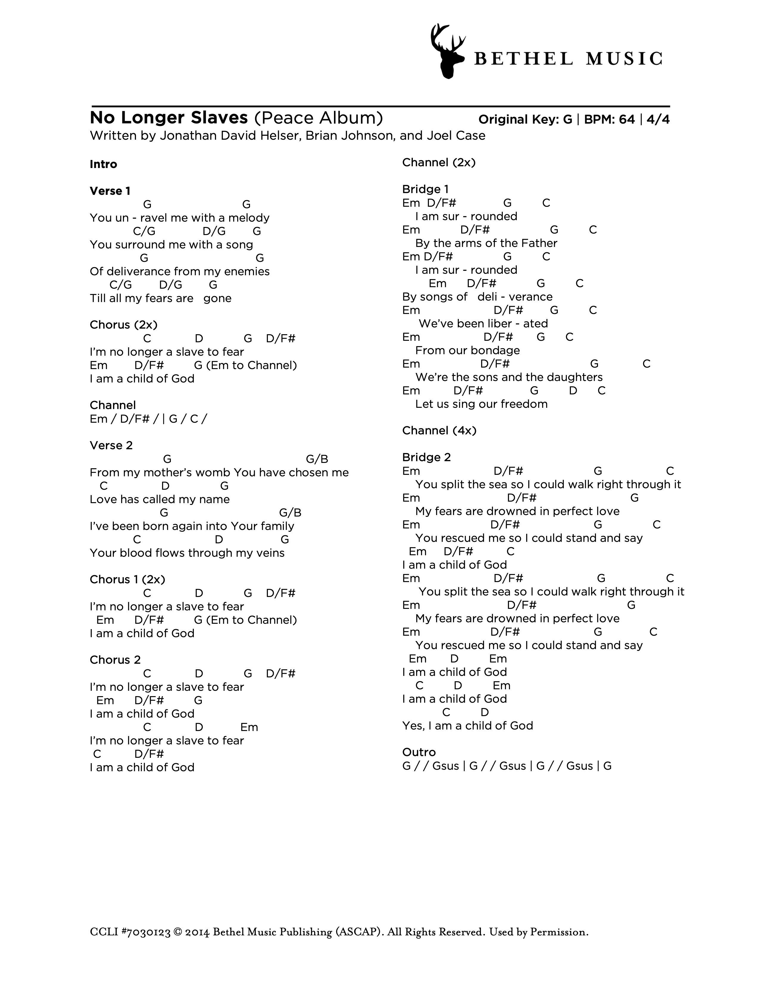 © 2014 Bethel Music Publishing (ASCAP). All Rights Reserved. Used by Permission.