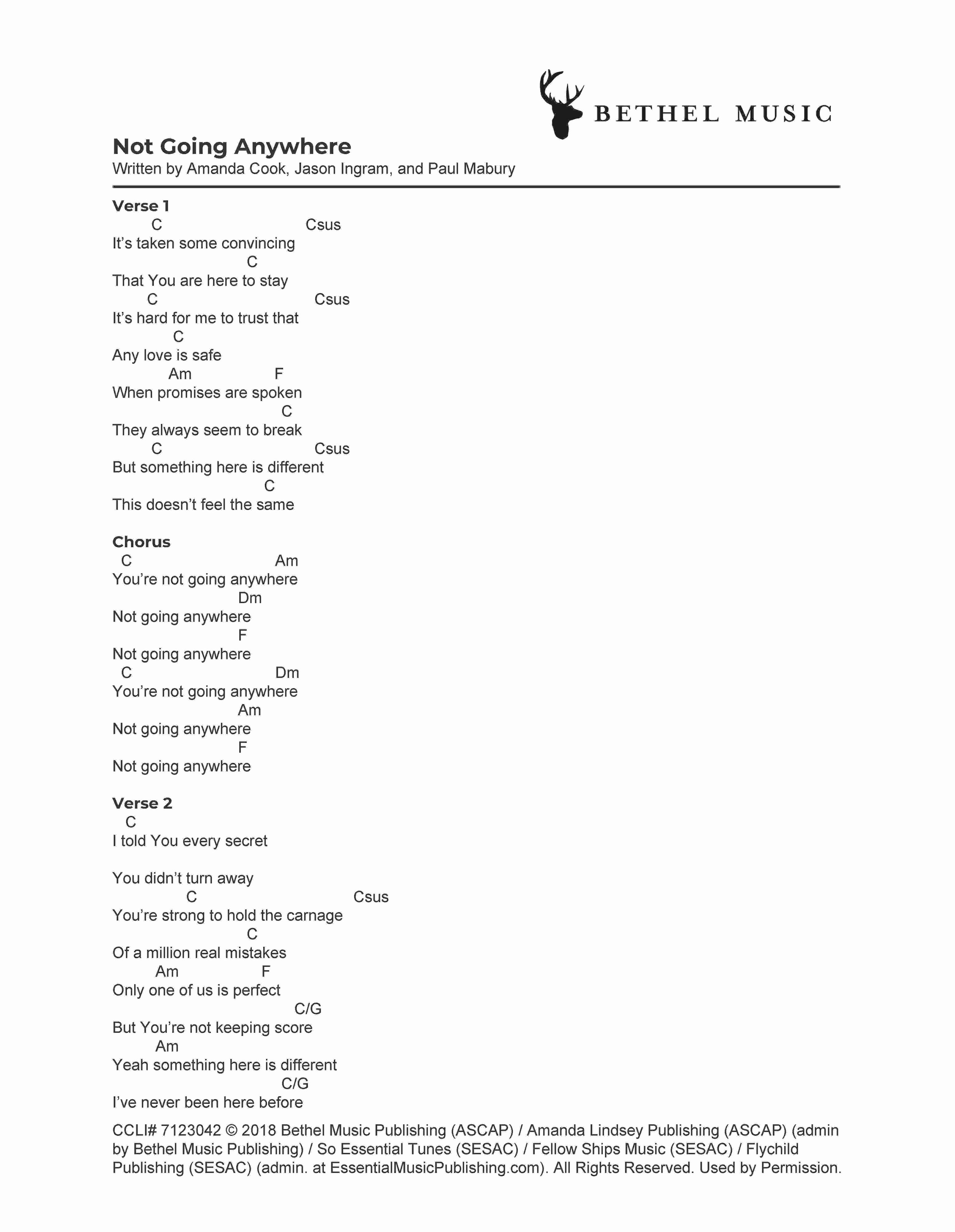 © 2018 Bethel Music Publishing (ASCAP) / Amanda Lindsey Publishing (ASCAP) (admin by Bethel Music Publishing) / So Essential Tunes (SESAC) / Fellow Ships Music (SESAC) / Flychild Publishing (SESAC) (admin. at EssentialMusicPublishing.com). All Rights Reserved. Used by Permission.
