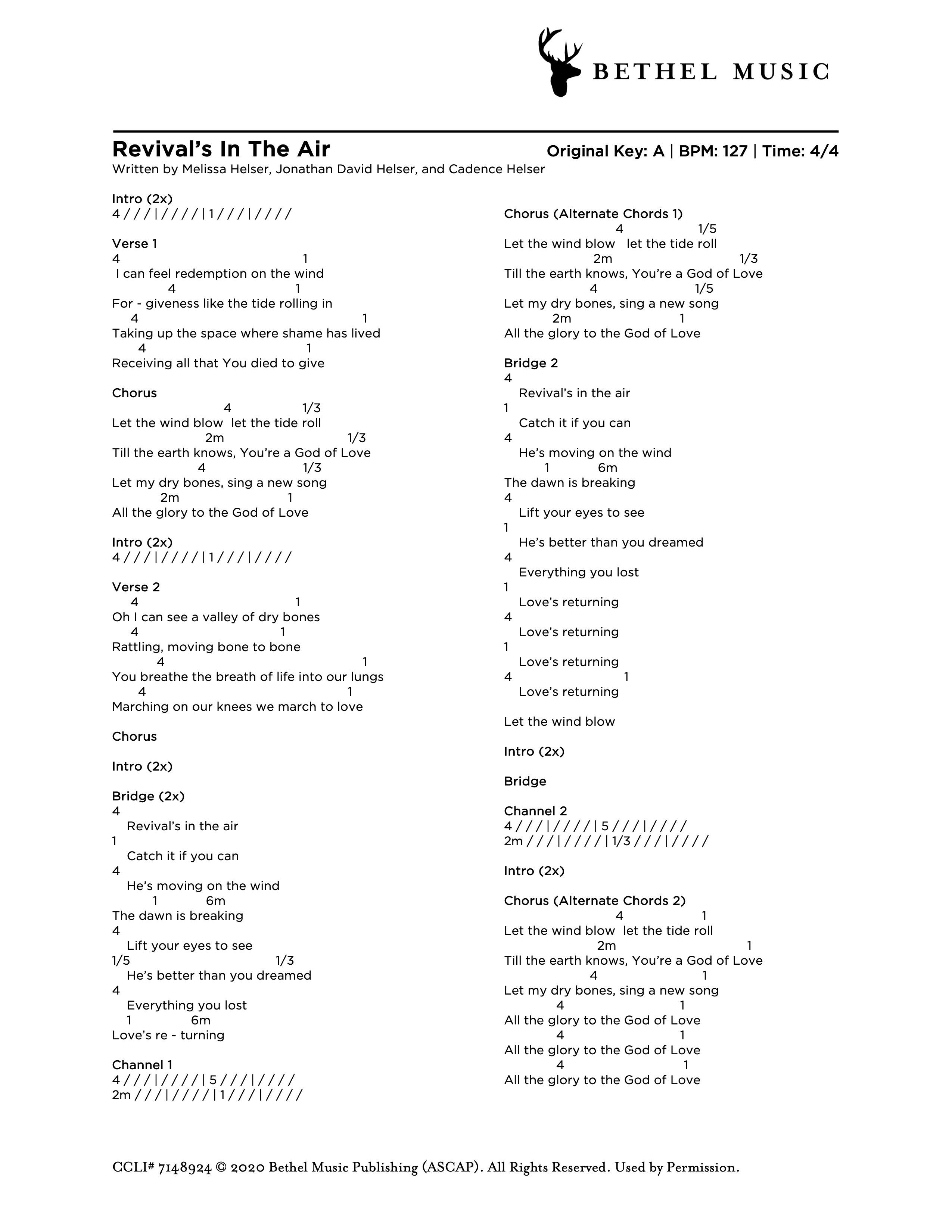 © 2020 Bethel Music Publishing (ASCAP). All Rights Reserved. Used by Permission.